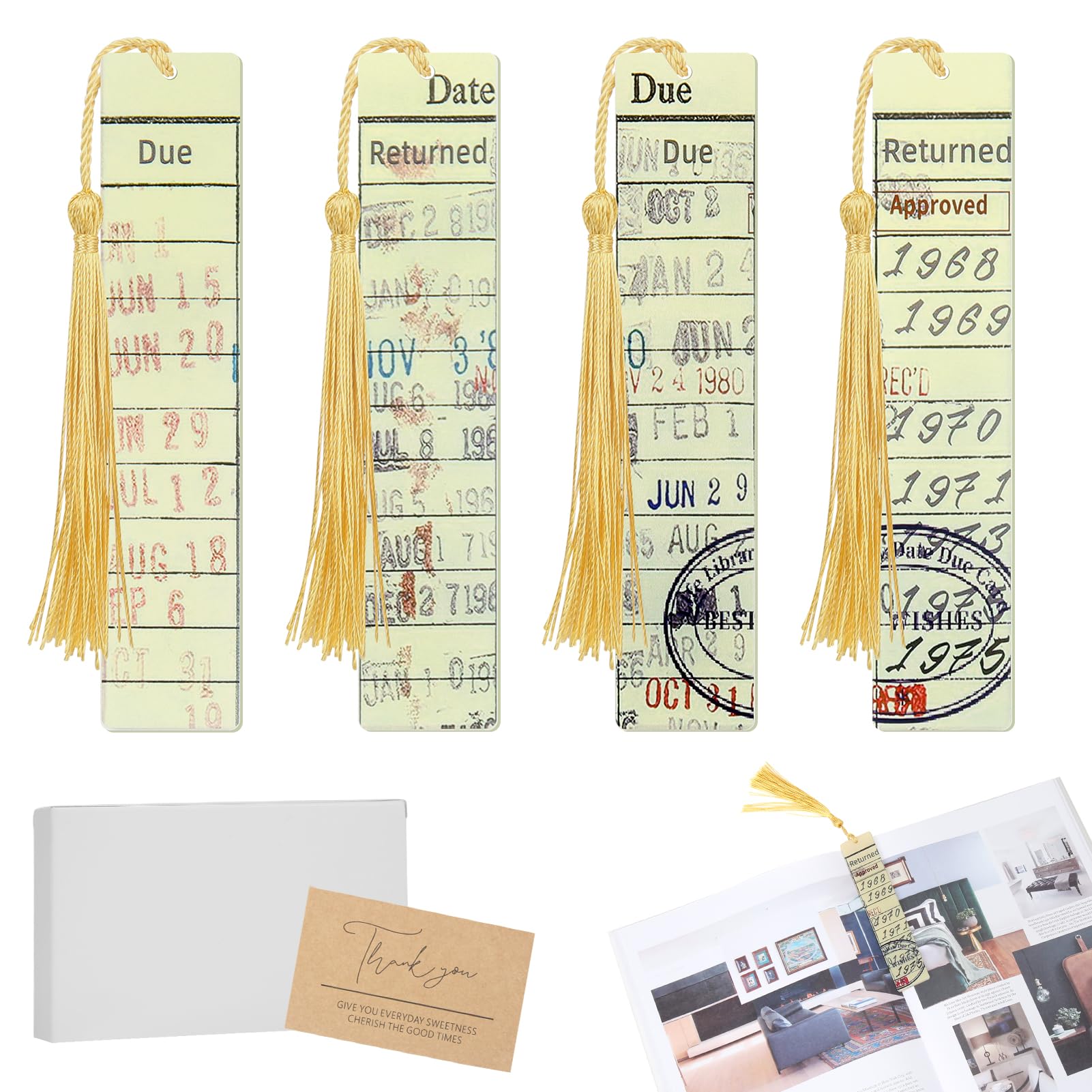 ăBeautiful MemoriesăTime is gone forever, but the books you read will be remembered in your mind. This unique coaster takes you back to the 60's/70's/80's, do you remember when you were borrowing books from the library? Bring your memories back to those good old days with these Library Due Date Card Bookmarks. ăOriginal Unique Bookmarks Designă: The bookmarks for women/men idea comes from the inspiration of the Library Due Date Card. We divided the designed Library Due Date Card with traces of time into four parts and decorated it with tassels to create these bookmark full of literary temperament. Motivates you to read and it is a cheerful topic-starter for all ages and tastes. ăGreat Literary GiftsăďźThe book marks for book for women is great for teacher appreciation gifts, graduation end of year, teacher Christmas gifts,Valentine's Day gifts,Mothers Day gifts from daughter,Thanksgiving,Thank You Gifts,Thinking of You Gifts,Christmas Stocking Stuffers for women,New Year Gifts. ăDuplex Well-printedă: We use high-quality acrylic material and advanced printing technology on these unique bookmarks, both the front and back sides are processed, the printing is clear, beautiful, light and durable. The cute bookmarks make readers relaxation happy and strong inspirational courageous. for teachers, readers, booklovers, coworkers, female, male, friends, bookworm...