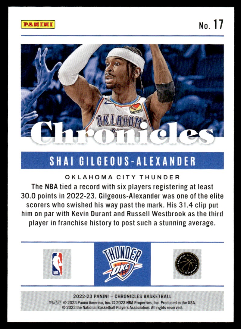 | 2022-23 Panini Chronicles Shai Gilgeous-Alexander Oklahoma City Thunder #17 |