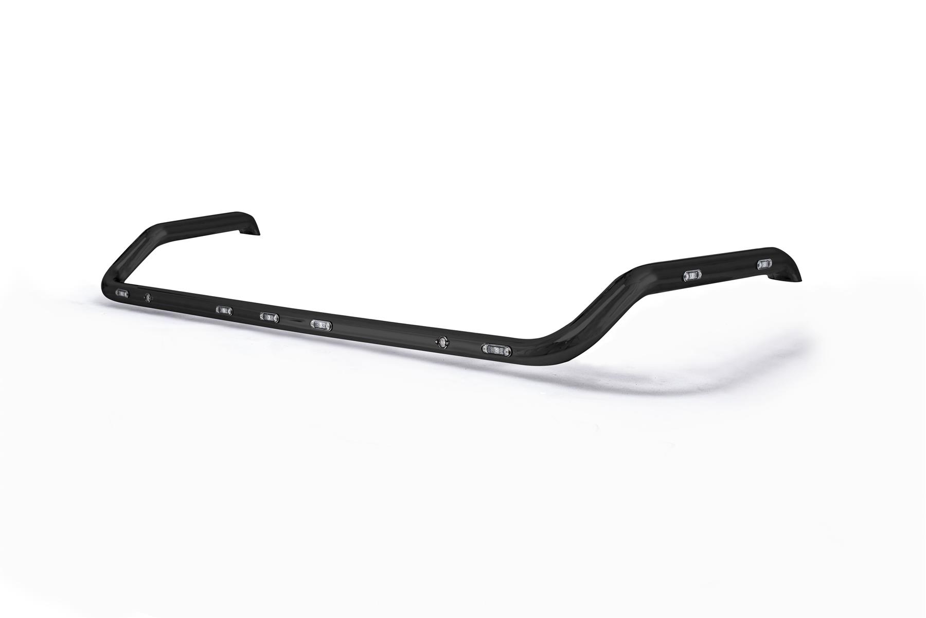 Haute qualité Barre de toit en acier inoxydable avec revêtement en poudre noire + LED encastrées x9 (blanc x5 et ambre x4 ) + stroboscopes ambrés x2 pour MAN Cabine TG3 GX modèles.