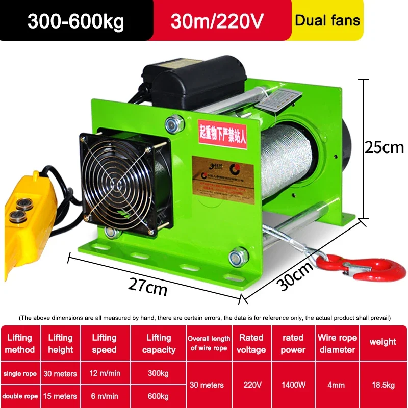 220V/380V German-style hoist heavy duty 1 ton small electric hoist wireless remote control crane fast lift lifting crane