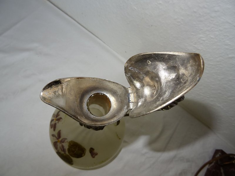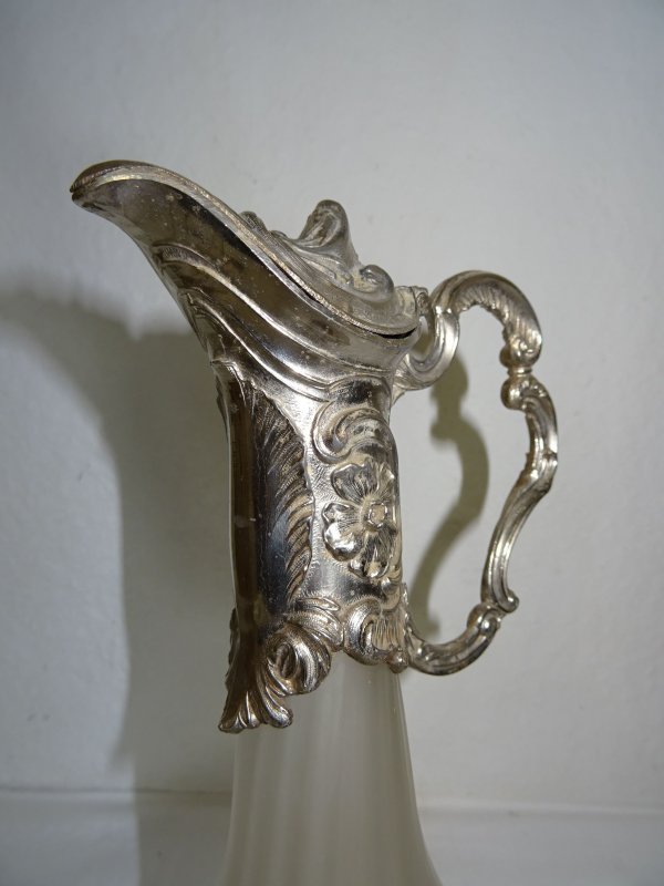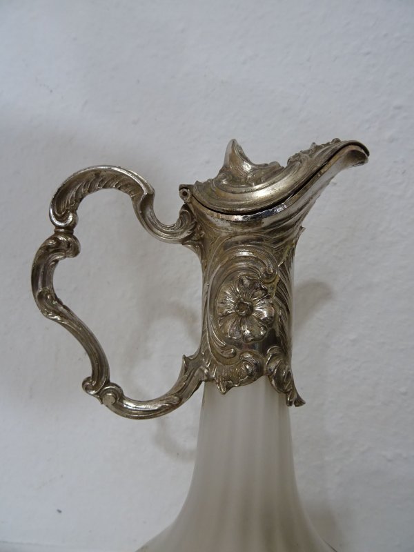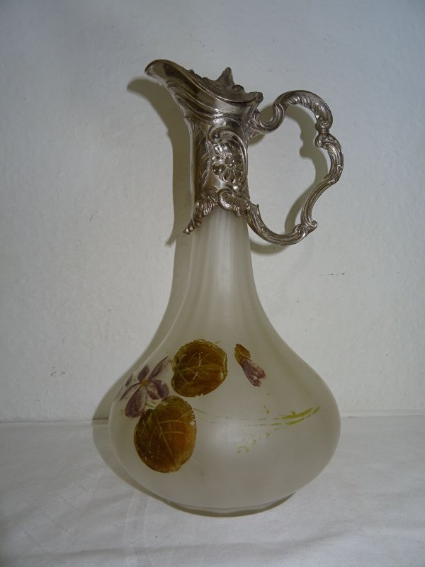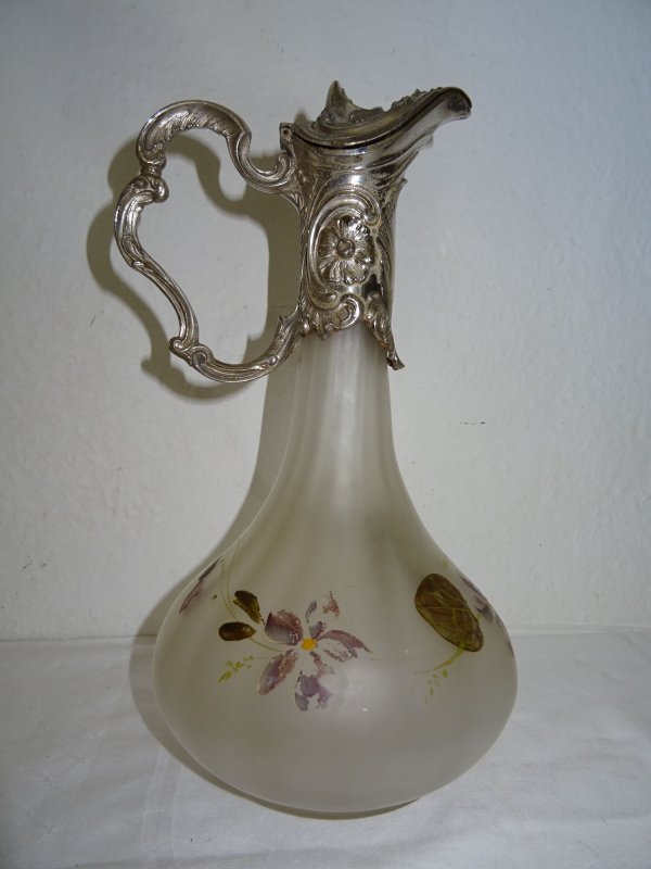 Glaskaraffe handgemalt, versilberte Fassung