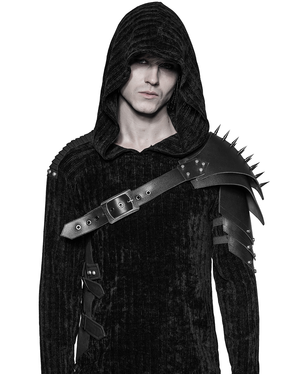 Punk Rave Mens Dieselpunk Shoulder Armour Harness Spiked Black Faux Leather Goth