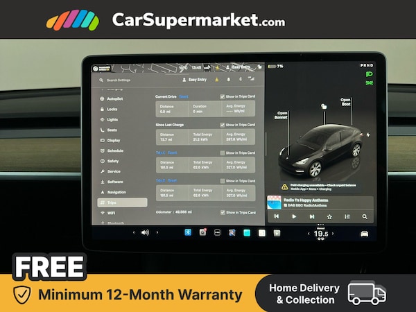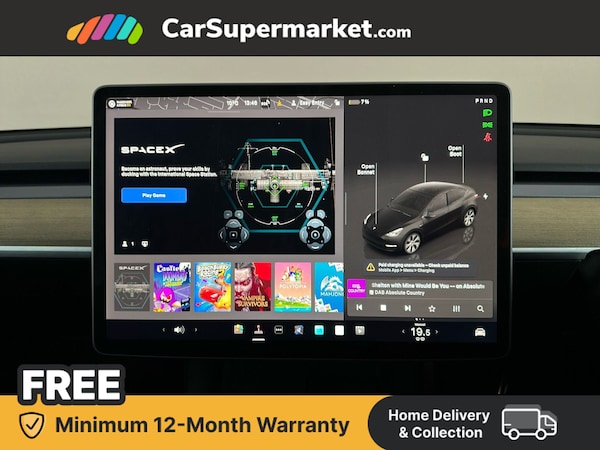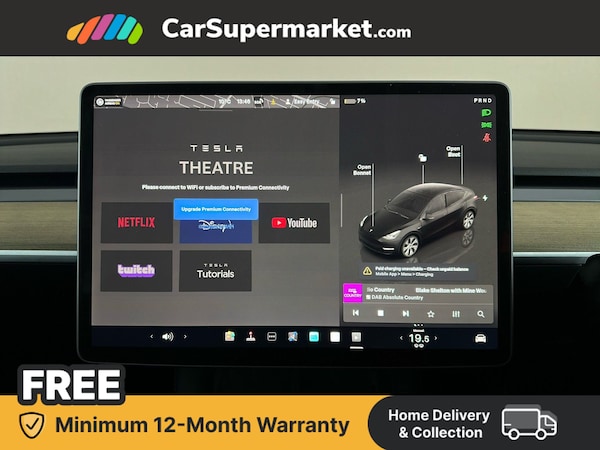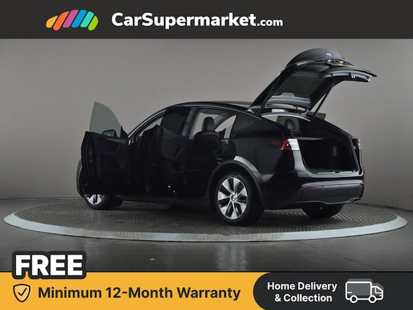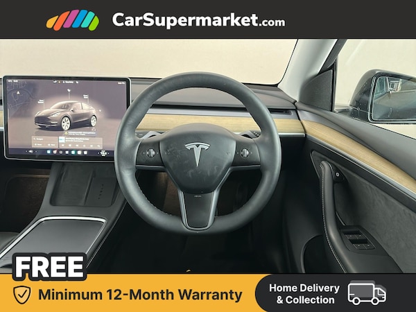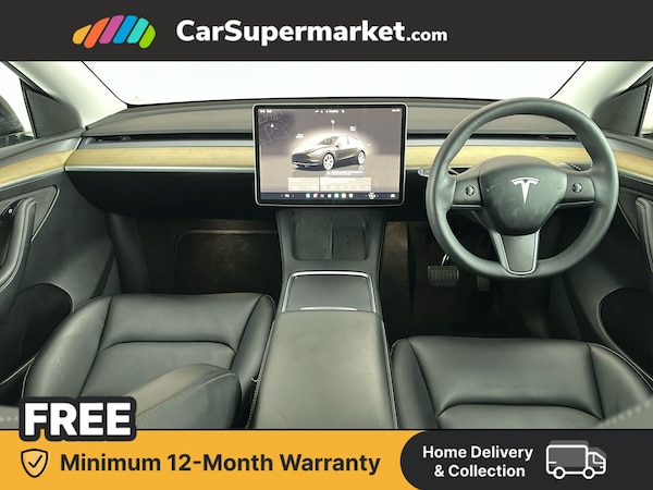 Dual motor all-electric Model Y Long Range. Features 15"" Touchscreen, Sat Nav, Blind Spot Monitoring, Parking Sensors, Bluetooth, Digital Radio, Heated Front Seats, Heated Steering Wheel and Keyless Entry. Optional Extra: Black paint (£1,300).
