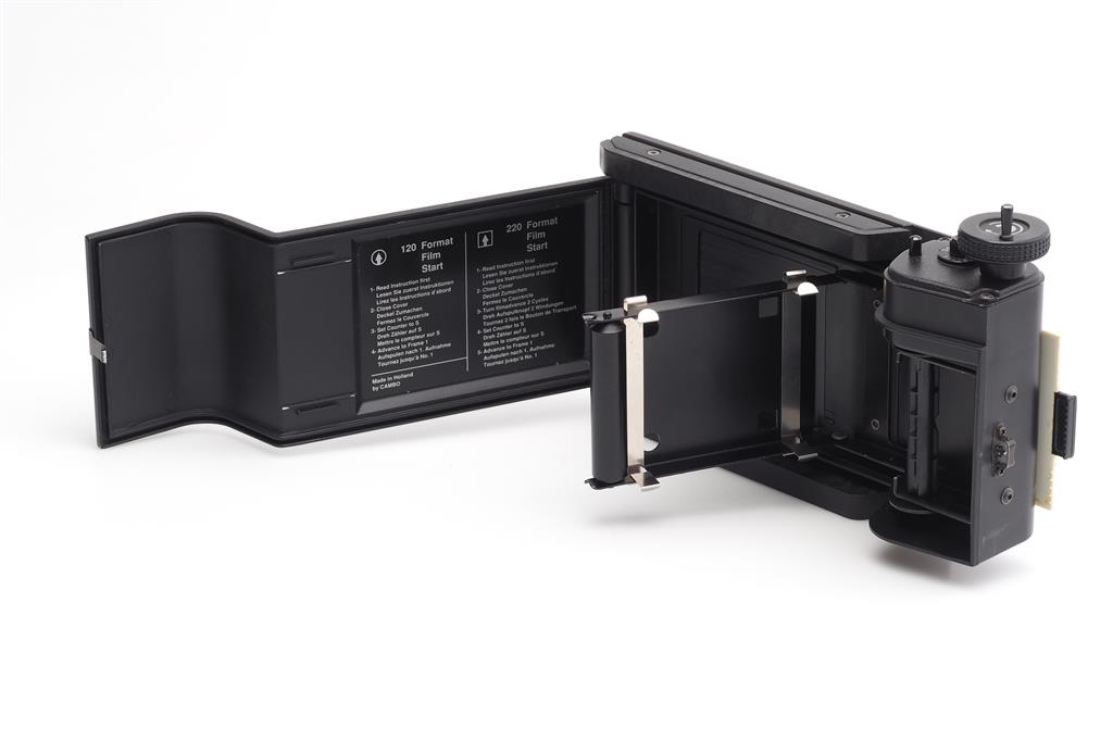 Tutto viene controllato attentamente con fonti di luce intensa e apparecchiature tecniche adeguate per il test delle telecamere.Porta pellicola Cambo 6x7 cm f. 4x5