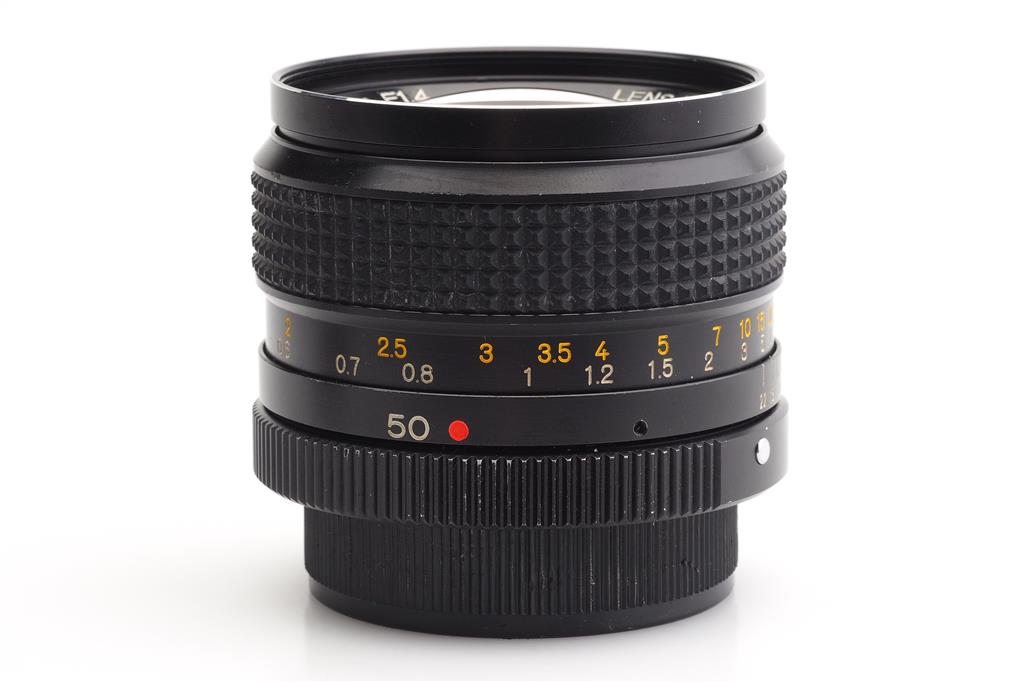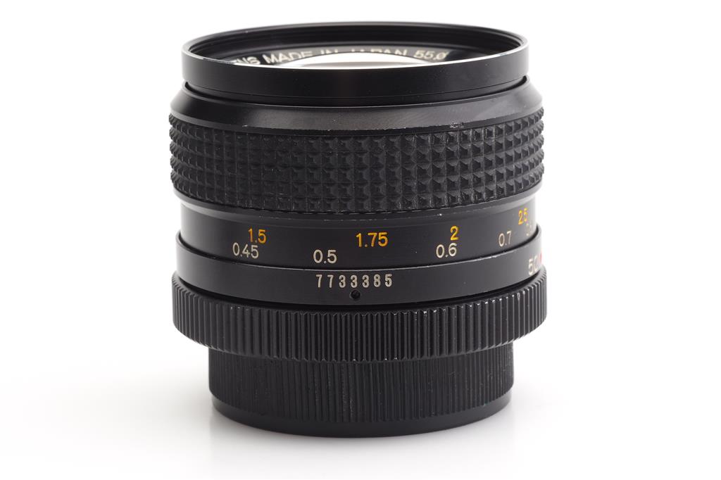 Tutto viene controllato attentamente con fonti di luce intensa e apparecchiature tecniche adeguate per il test delle telecamere.Konica Hexanon AR 1.4/50mm #7733385
