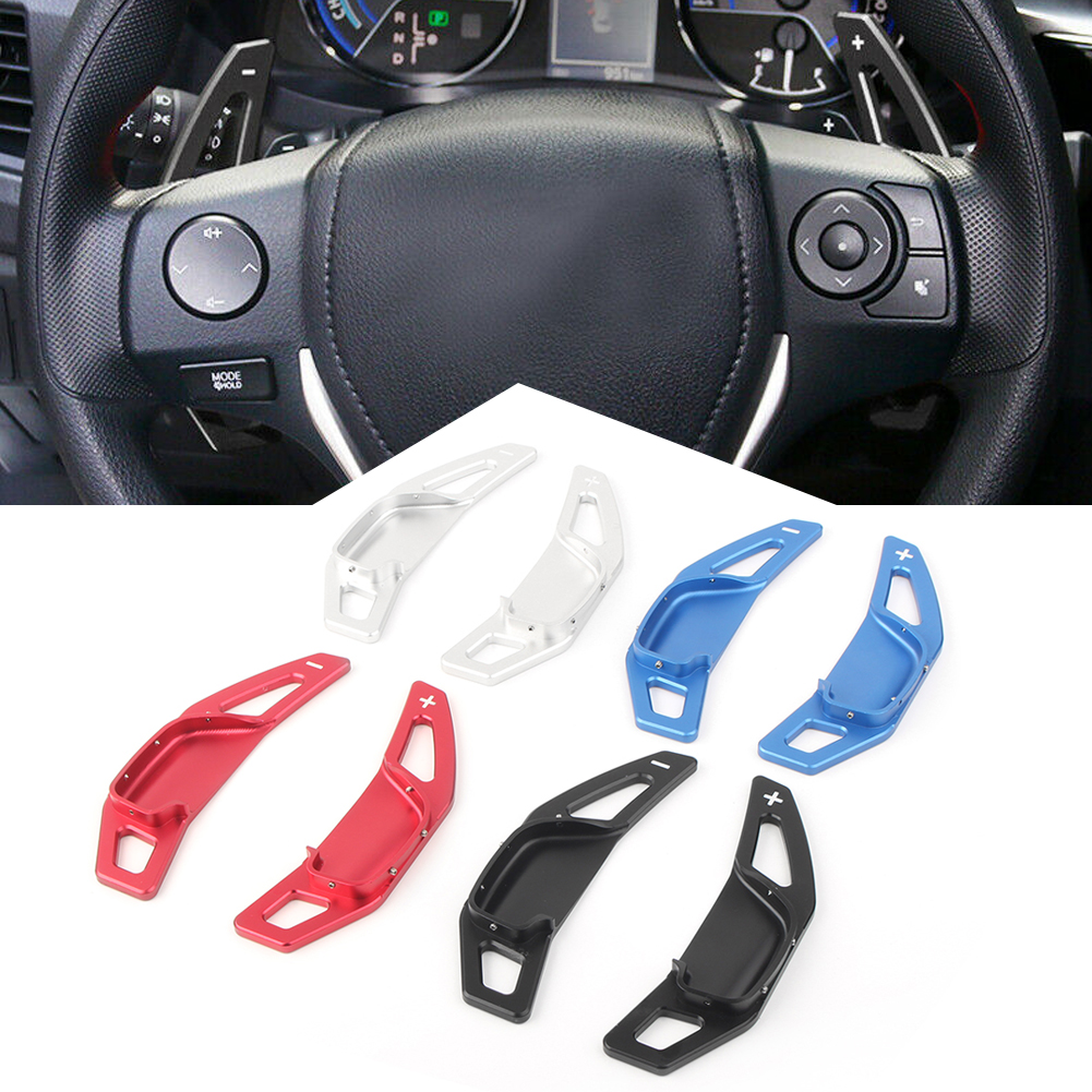 Shifters Gear Shift Steering Wheel Extension Paddle Fit for Toyota Corolla Camry Features: -Brand new and high quality -Easy installation -Upgrade instantly improve extreme visual effect. -Exactly fitted for original shifter paddle. -Aluminum alloy material surface sandblasting anodic oxidation. -The +/- symbols are etched out of the top of each blade. -Exquisite CNC-machined magenesium aluminium, beautiful to look at and cool to the touch. Specifications: -Material:Aluminium Alloy -Color:Black / Red / Silver / Blue Please let us know the color you’d like. You can leave the message on your Paypal note or Email to tell us. Otherwise we’ll send them at random. -Placement on Vehicle: Front,Left,Right -Surface Finish:dull polish -Type:Steering Wheel Package includes: 1 Pair Shift Paddle Shifter Extension(Left+Right) Fitment: fit for RAV4 2013-2017 fit for Camry 2012-2017 fit for Corolla 2013-2018 fit for Mark X 2010-2017 fit for Zelas 2011-2016 Notice: Just decoration, only fits models with original steering wheel shifter paddle Note: - Please allow 1-3CM differs due to manual measurement. - Due to the different display and different light, the picture may not reflect the actual color of the item. Thanks for your understanding.