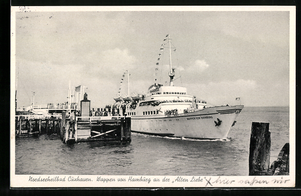 AK Cuxhaven, Passagierschiff Wappen von Hamburg an der Alten Liebe