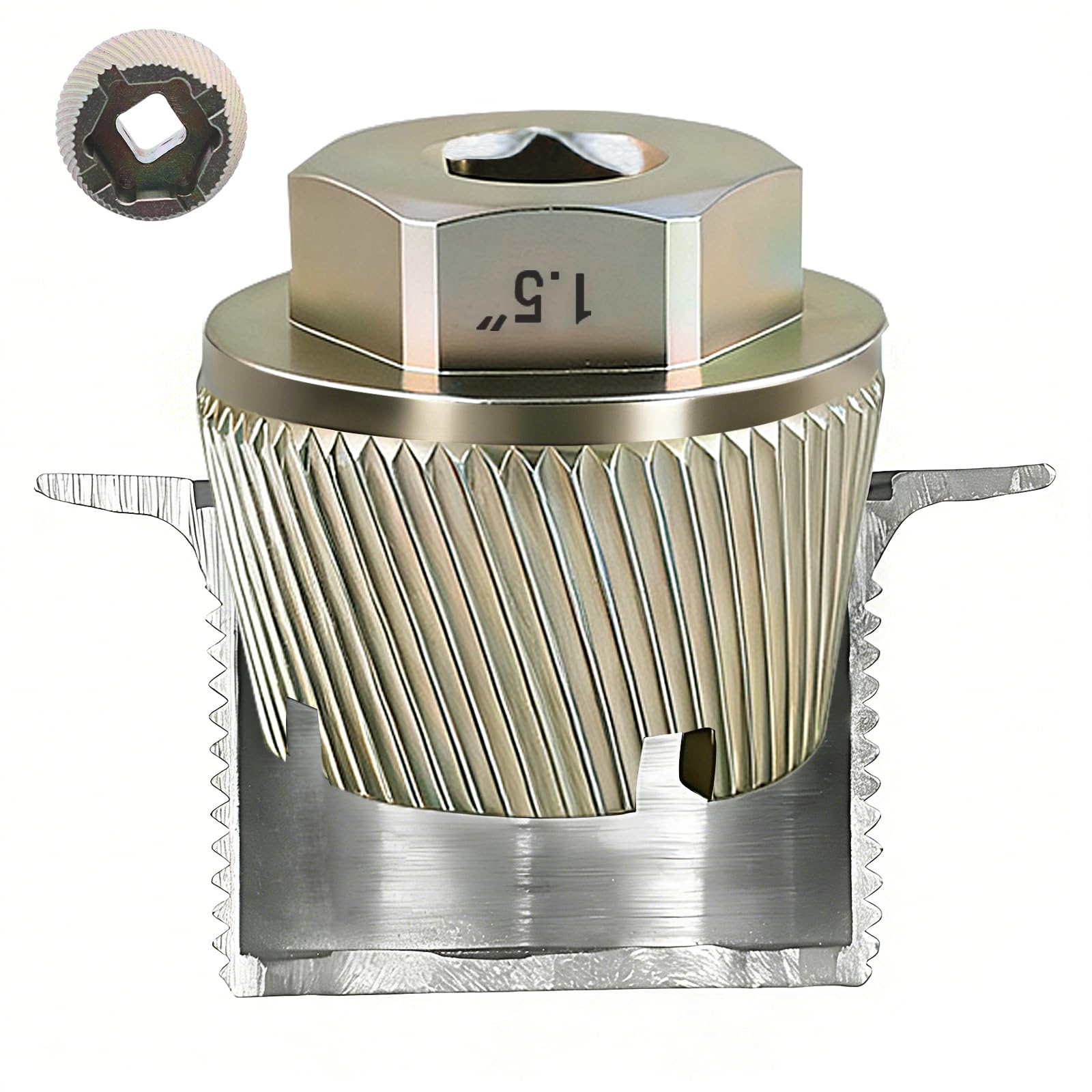 Tub Drain Extractor – Effortlessly remove stubborn 1-1/2” tub drains with a standard ½” ratchet drive, extension, or wrench. Our patented helical knurl design grips the drain tightly—applying more torque increases its bite, ensuring zero slippage. Built from hardened steel with a corrosion-resistant gold plate finish for maximum durability.