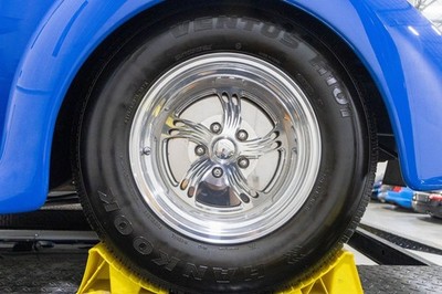The exterior sits on Billet Specialties wheels and features flush-mounted LED taillights, giving the car a clean, refined look. Braking is handled by front disc brakes with rear drums, and the car breathes through a stainless steel exhaust system.