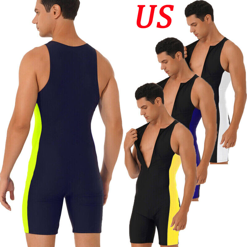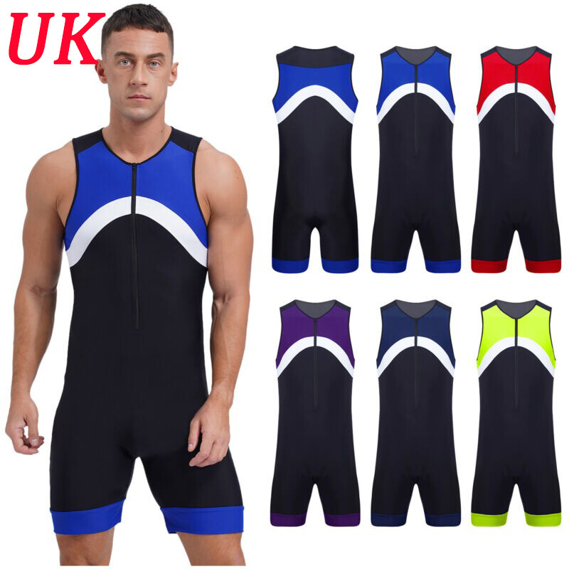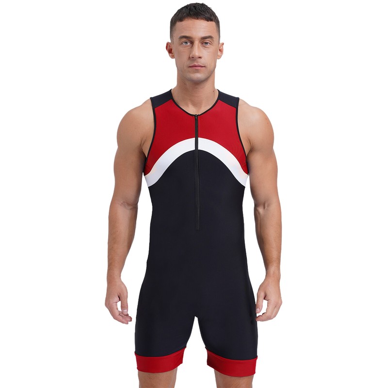 Men’s contrast color sports jumpsuit is finished with smooth seams to ensure a chafe-free experience during exercise.