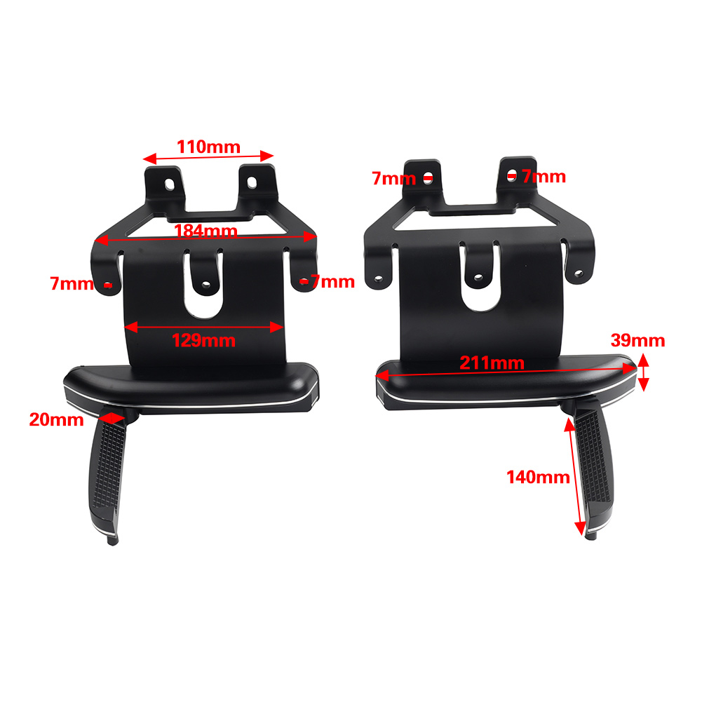 Adjustable Highway Footpeg Bracket Kit For Honda Gold Wing GL1800 F6B 18-25 Features: 1. Made of premium aluminum, with black anodized surface, making it wear and weather resistant. 2. Provides a larger surface area and a flatter support position, providing safer and more comfortable riding experience. 3. It's adjustable, you can adjust it to meet your needs. 4. Great replacement for you old or broken one. Specification: Condition: New Material: Aluminum, Steel Color: Black Placement on Vehicle: Left, Right Fitment: For Honda Gold Wing GL1800 2018-2025 For Honda Gold Wing F6B 2018-2025 Compatibility is for reference only, you could look at the size and other details. Packing Included: 1 Pair of Foot Pegs Engine Protection Kit with mounting accessories (as picture shown) Notes: 1. No installation instruction included. 2. This is replacement item but not genuine 3. There is slight manual measurement deviation for the data. 4. Due to the lighting and screen settings, the real color may slightly different from the picture.