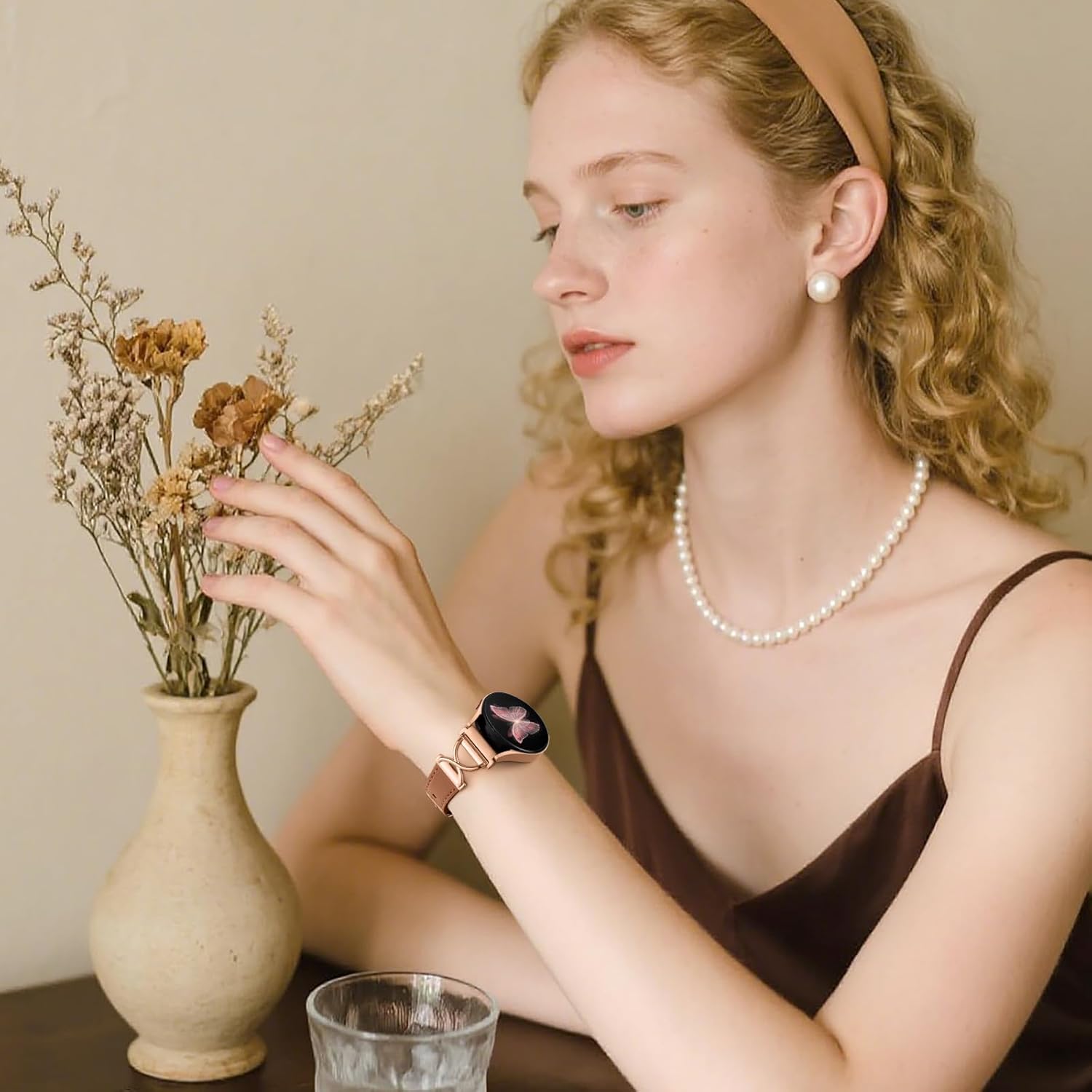 Leather Band Compatible with Samsung Galaxy Watch 7 Band 6 5 4 FE 40mm 44mm, Watch 6 Classic/5 pro/Active 2, 20mm Dressy Strap with X-Shape Design for Samsung Watch Bands Women