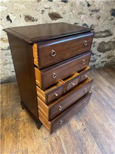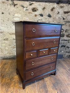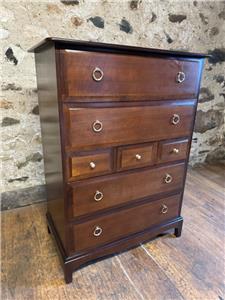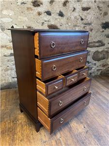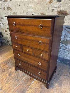 WE HAVE FOR SALE A STUNNING STAG MINSTREL CHEST OF DRAWERS. IT HAS LOADS OF STORAGE SPACE WITH 4 LARGE DRAWERS AND 3 SMALL DRAWERS. IT IS IN VERY GOOD CONDITION AND MEASURES 82CM X 46CM X 112CM IN HEIGHT. THE DELIVERY PRICE IS TO ANYWHERE IN MAINLAND UK - FOR HIGHLANDS AND ISLANDS PLEASE EMAIL FOR DELIVERY QUOTE.