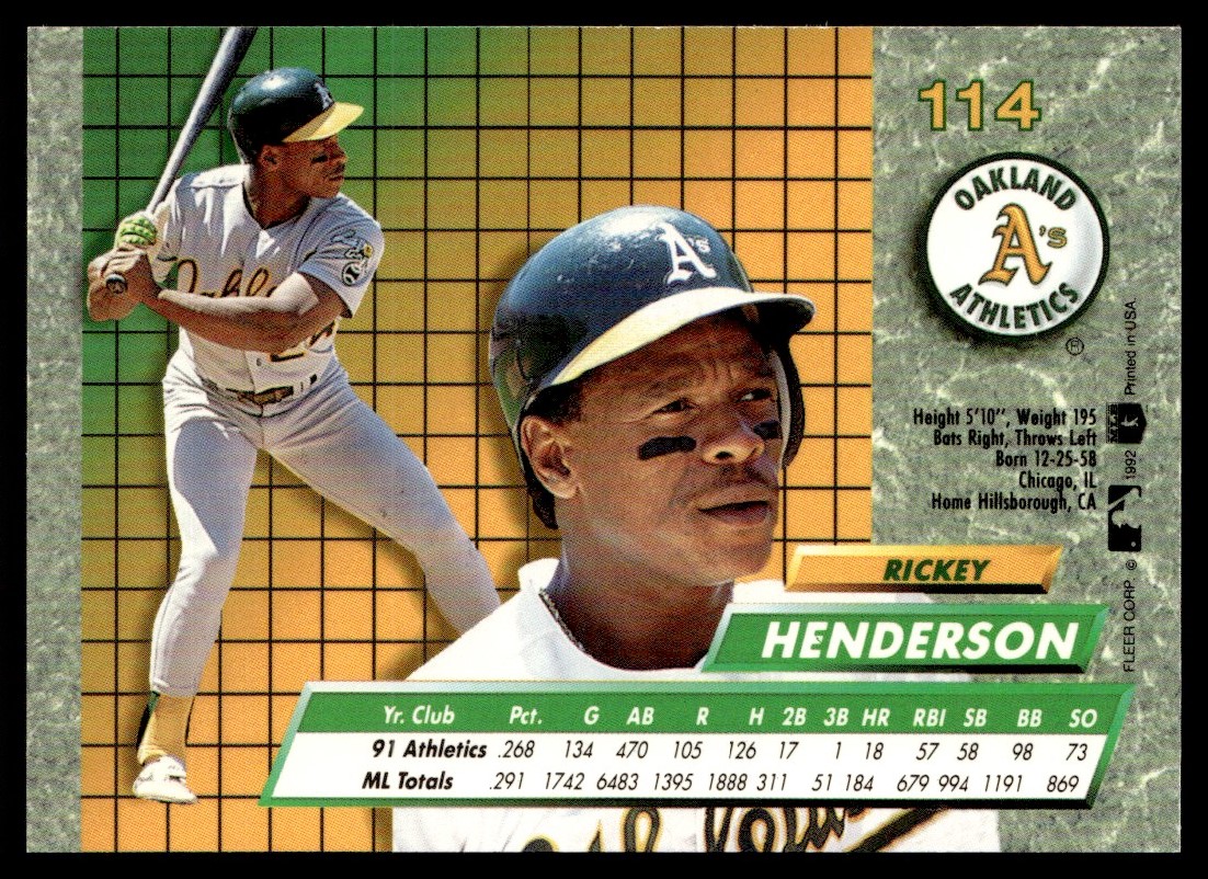 1992 Ultra Rickey Henderson Oakland Athletics #114
