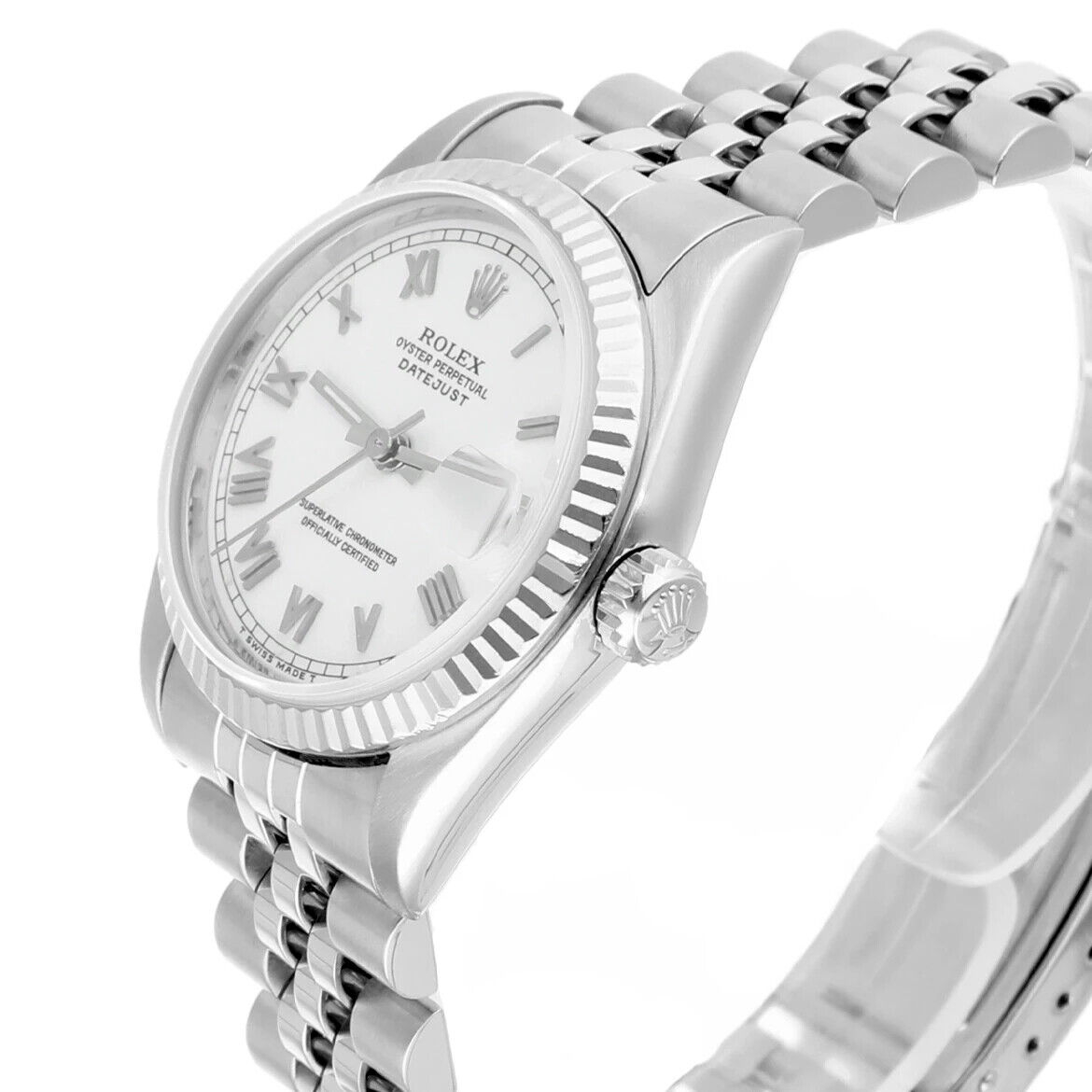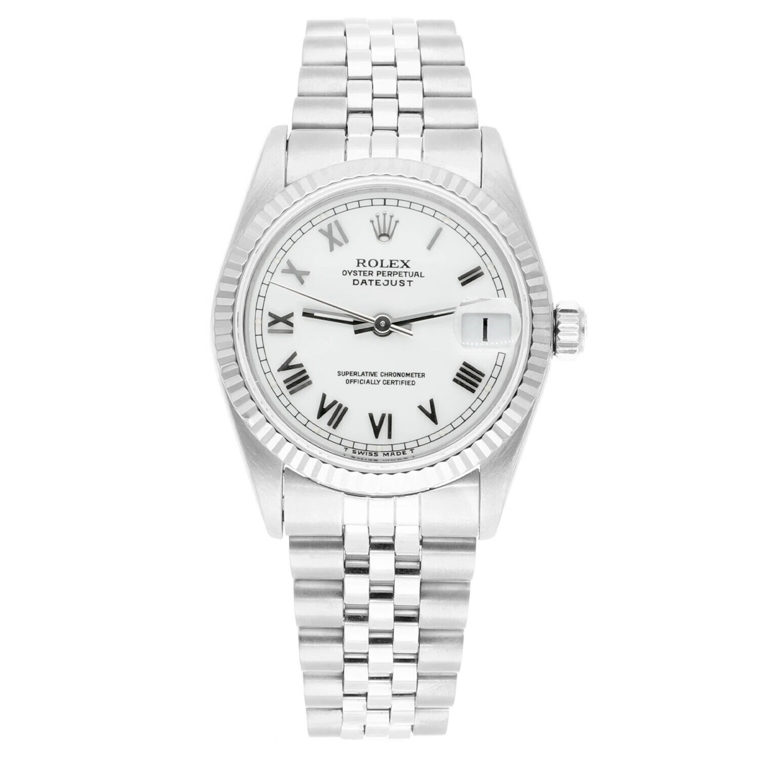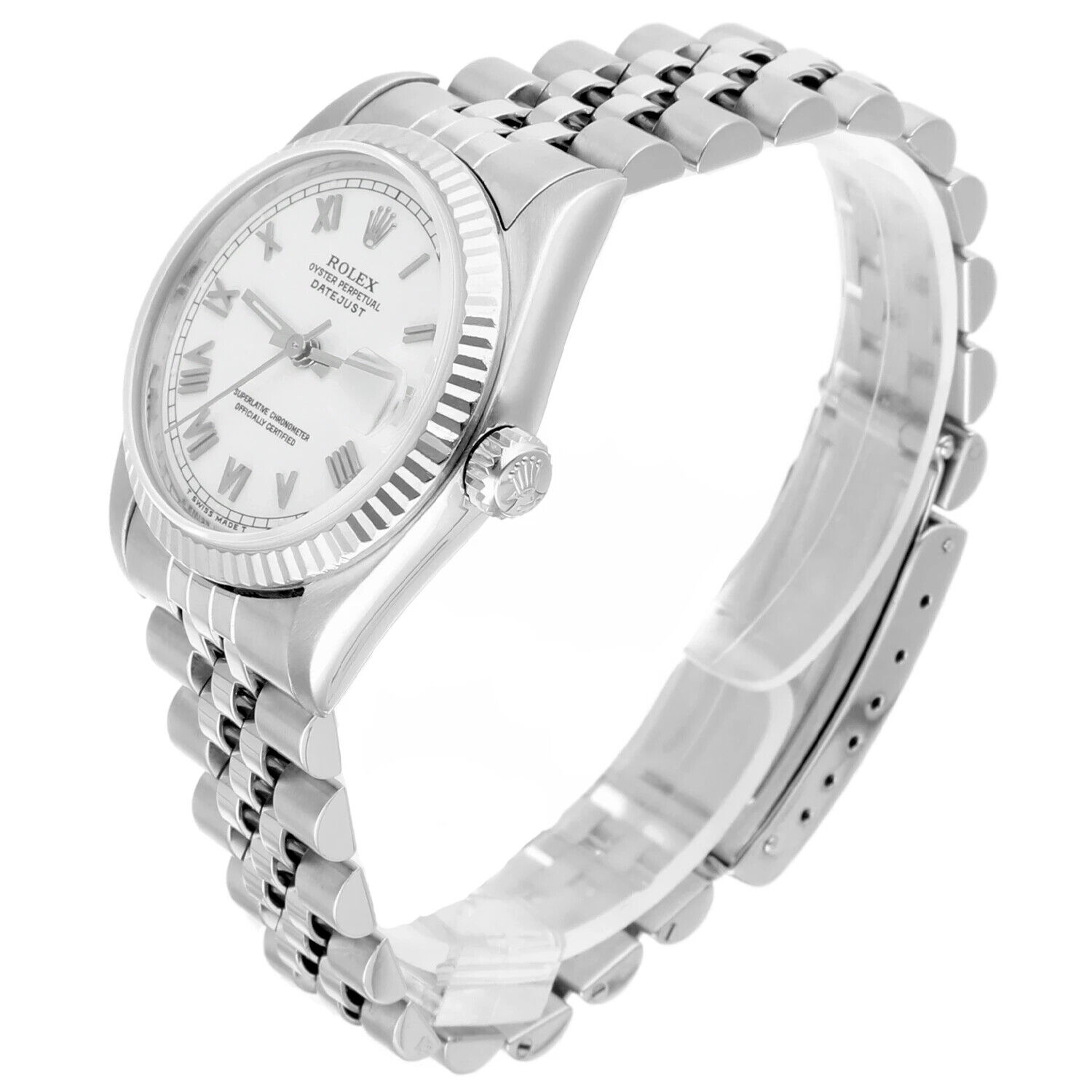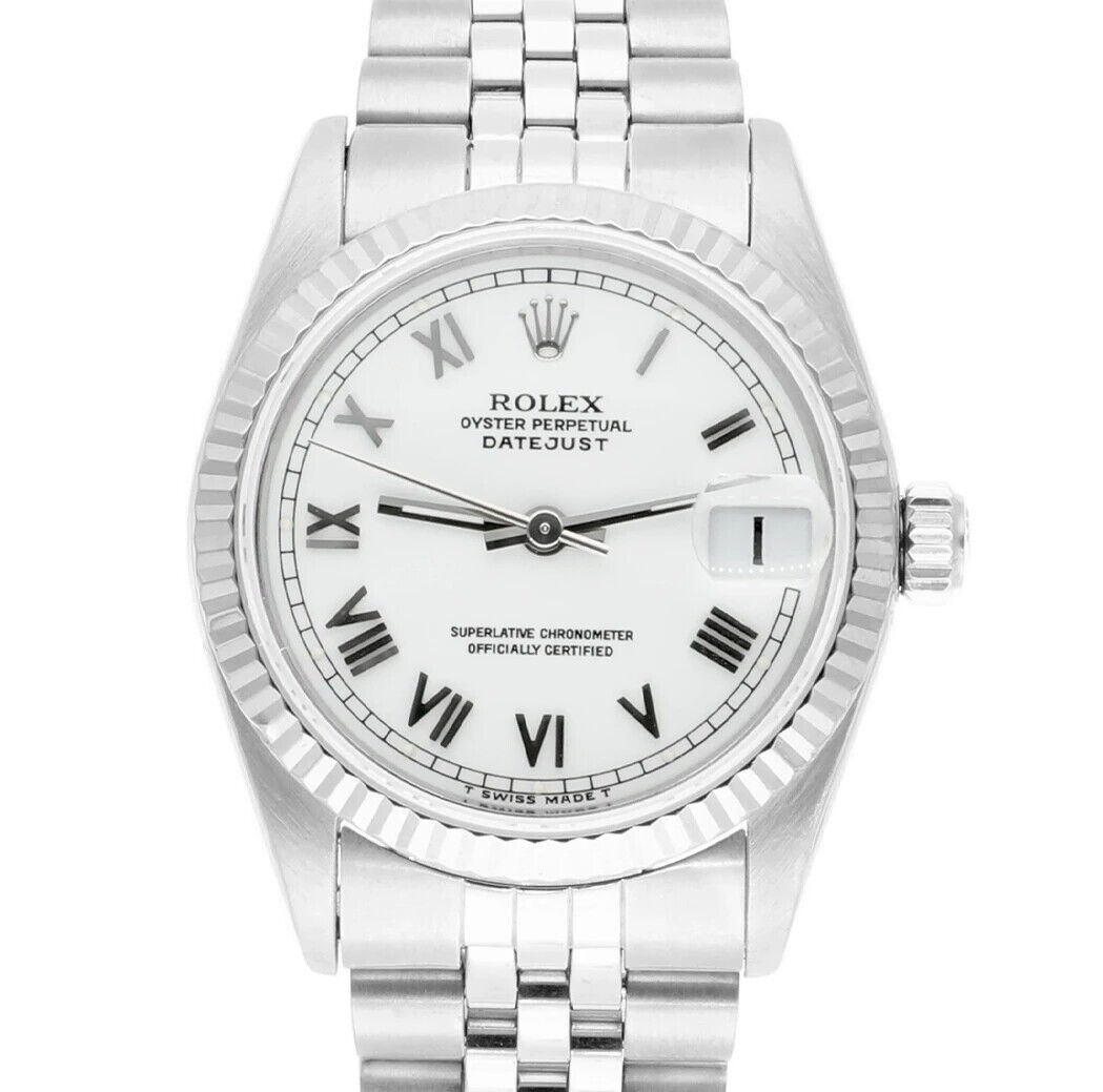 Rolex Datejust 68274 31mm White Roman Dial Stainless Steel Watch White Gold Bezel