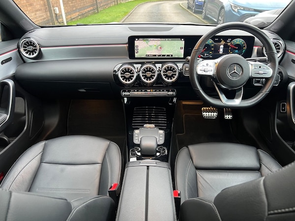 Polar White with Black Leather + 100% HPI Clear with Certificate + Big Spec + Outstanding Condition + Full Mercedes Benz History. Wearing a mini-me CLS body with frameless doors and the angriest-looking snout of any current Mercedes-Benz, the CLA is a machine many will desire simply for the way it looks. Its key rival, the Audi A3 saloon, can't hope to compete for carpark drama. More astounding is that those brilliant looks also give exemplary aerodynamics make it one of the world's slipperiest production cars available. Equipped with Mercedes' refined 1.3 Hybrid mated to their slick automatic 'box the CLA is a brilliant car to drive and every inch a Mercedes-Benz. Finished in fashionable Polar White with butter soft black leather, the bodywork is arrow straight and the alloy wheels, unmarked. Once inside the car, this is where it really takes your breath away. You are greeted by a huge digital dashboard that is crystal clear, and 64 colour ambient lighting which gives the impression of being in the year 2050, it really does feel like a spaceship. Being the '' Premium Plus '' model you pretty much get every option you could ever dream of, highlights including Panoramic Sunroof, heated leather seats and Multibeam LED lights.A one owner car since it boasts full Mercedes Benz service history( PDI and print at 9k and 22k) and and will be fully prepared prior to collection. 100% HPI clear it's supplied complete with two keys, owners pack, tools etc. together with the balance of its new car warranty and breakdown cover all within the advertised price - we do not charge any hidden 'administration' fees! Our verdict: The Coolest Coupe on the Market!