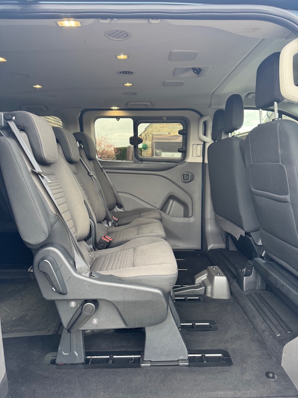 Ford Tourneo Custom2.0 310 EcoBlue Titanium L1 Euro 6 (s/s) 5drDIRECT MOTABILITY NO VATThe vehicle comes direct from motability with two keys and full service history. This model is a 6 seater variant with wheelchair ramp . First to view will buy . NATIONWIDE DELIVERY ASK FOR QUOTE , 12 months mot can be arranged upon purchase, Next MOT due 16/05/2026, Full service history, 8 seats, 17in Alloy Wheels - 10 Spoke Silver, Airbag - Drivers, Airbag - Front Passengers, Airbag - Front Side and Curtain Airbags, Alternator - Standard Duty 165Amp, Anti-Lock Braking System - ABS - with Electronic Brake-Force Distribution, Assist Handle - Located on B-pillar, Battery - Cold Start -20 Degree C, Body Colour Door and Tailgate Handles, Bodyside Mouldings - Body Colour, Bottle Holder - Twin 2 litre Bottle Capacity - Facia-Mounted, Bumpers - Front and Rear Body Colour, Courtesy Light - Footwell Illumination, Courtesy Light - Header-Mounted - Front Maps Lights with Theatre Dimming, Courtesy Light - Rear Seat with Theatre Dimming, Cruise Control with Adjustable Speed Limiter, Door Mirrors - Blind Spot Eliminator and Integrated Side Indicator, Door Mirrors - Body Colour Skull Caps, Door Mirrors - Power-Foldable - Electrically-Operated and Heated, Doors - Drivers and Passengers Side - Sliding Glazed Doors and Steps, EBA - Emergency Brake Assist, ESC - Electronic Stability Control, Emergency Brake Warning, Floor Covering - Carpet, Ford Easy-Fuel Capless Refuelling System with Misfuel Inhibit, Ford Eco Mode - Driver Information System, Front - Independent MacPherson Struts - Coil Springs - Stabiliser Bar and Gas-Pressurised Shock Absorbers - Rear - Leaf Springs and Gas-Pressurised Shock Absorbers, Front Air Conditioning with Pollen Filter, Front Fog Lights with Static Cornering, Gearshift Indicator Light, Gearshift Knob - Leather-Trimmed, Glazed Rear Tailgate with Wash-Wipe, Glovebox - with Lockable Lid, Halogen Projector Headlight with LED Day Running Lights, Headlights Courtesy Delay - 30 Seconds Duration, Heater - PTC, Heater - Recirculation, Hill Start Assist, ICE Pack 23, ISOFIX - Child Seat 3 Attachments - Centre - Second and Third Row - and Drivers Side - 2nd Row - Seats, Interior Lighting - Battery Saver - 30min, LAC - Load Adaptive Control, Load Compartment - DIN 75410 Compliant Tie-down Loops, Loadspace Compartment Lights, Locks - Audio Mislock Feedback - Audible Signal if a Door is Ajar When Locking Activated, Locks - Auto Locking on Drive-away - Doors Automatically Lock at 5 mph - with Crash Unlocking Disabled, Locks - Auto Relocking - Doors Relock after 45 Seconds if no Door is Opened, Locks - Configurable Locking Pack 2 - 2-Stage Unlocking, Locks - Key Operated Bonnet Release, Locks - Power Door Deadlocks - Shielded with Strengthened Mountings, Locks - Remote Control Central Locking with 2 Key Fobs, Mud Flaps - Front, Parking Distance Sensors - Front and Rear, Passive Anti-Theft System - PATS - Immobiliser, Perimeter Anti Theft Alarm, Power Assisted Steering, Power Front Windows with One-Shot Up-Down, Power Point Socket - 12V - Rear, Power Point Socket - 2x 12V, Privacy Glass, Quickclear Heated Windscreen, Rain Sensing Front Wipers and Automatic Headlights, Rear Compartment Manual Air Conditioning, Rear Seat Recline and Second Row Armrests, Rear Seats - Second Row - Triple Wide Seats - 2+1 - Foldable and Detachable, Rear Seats - Third Row - Triple Wide Seats - 2+1 - Foldable and Detachable, Rear Window - Heated, Roll Stability Control and SideWind Mitigation, Running Boards - Door Length, Seatbelts - 3 Point Diagonal Inertia Reel - All Seats, Side Rear Window Blinds, Side Windows - Second Row - Flip Open, Side Windows - Third Row - Fixed, Spare - Full Size with Tool Kit, Standard Duty Battery - Single AGM 80Ah - 800CCA, Steering Column - Rake and Reach Adjustment, Steering Wheel - 4-Spoke Leather Trimmed, Storage - Drivers Side - Storage Compartment on Facia Top with Lift Up Lid, Storage - Front Door Map Pockets, Trip Computer, Twin Glazed Sliding Side Load Doors with Steps, Tyre Pressure Monitoring System - TPMS, Vehicle Identification Number - VIN - Visible, Water in Fuel Filter with Sensor, Wipers - Rear with Auto Reverse Wipe and Electrically-operated Wash,