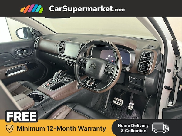 This Citroën C5 Aircross Flair Plus is finished in white and offers a spacious and comfortable SUV experience. It includes blind spot monitoring, cruise control, lane departure warning, Bluetooth connectivity, traffic sign recognition, keyless entry, parking sensors, Apple CarPlay, Android Auto, wireless phone charging, satellite navigation, a panoramic glass roof and automatic climate control, ensuring excellent comfort and practicality. Supplied with a minimum 12-month warranty.