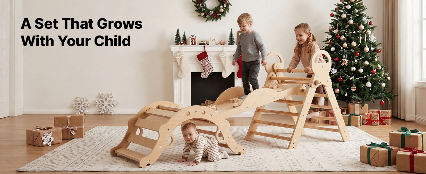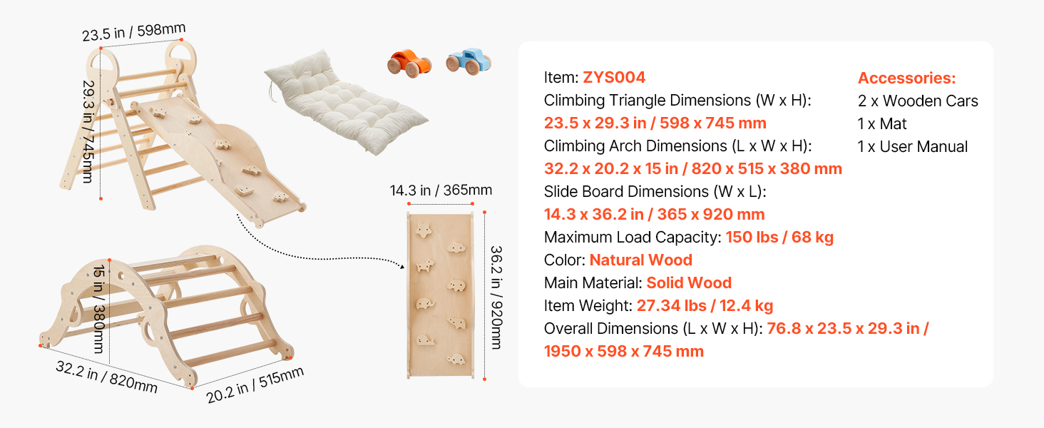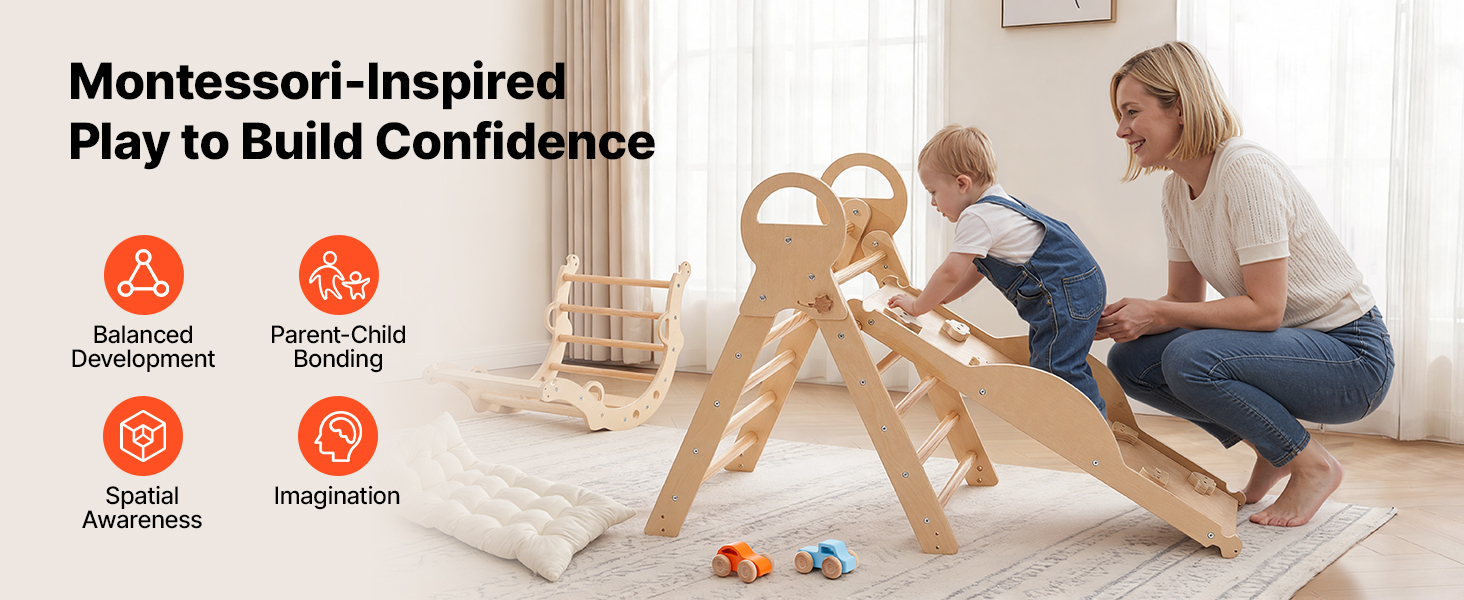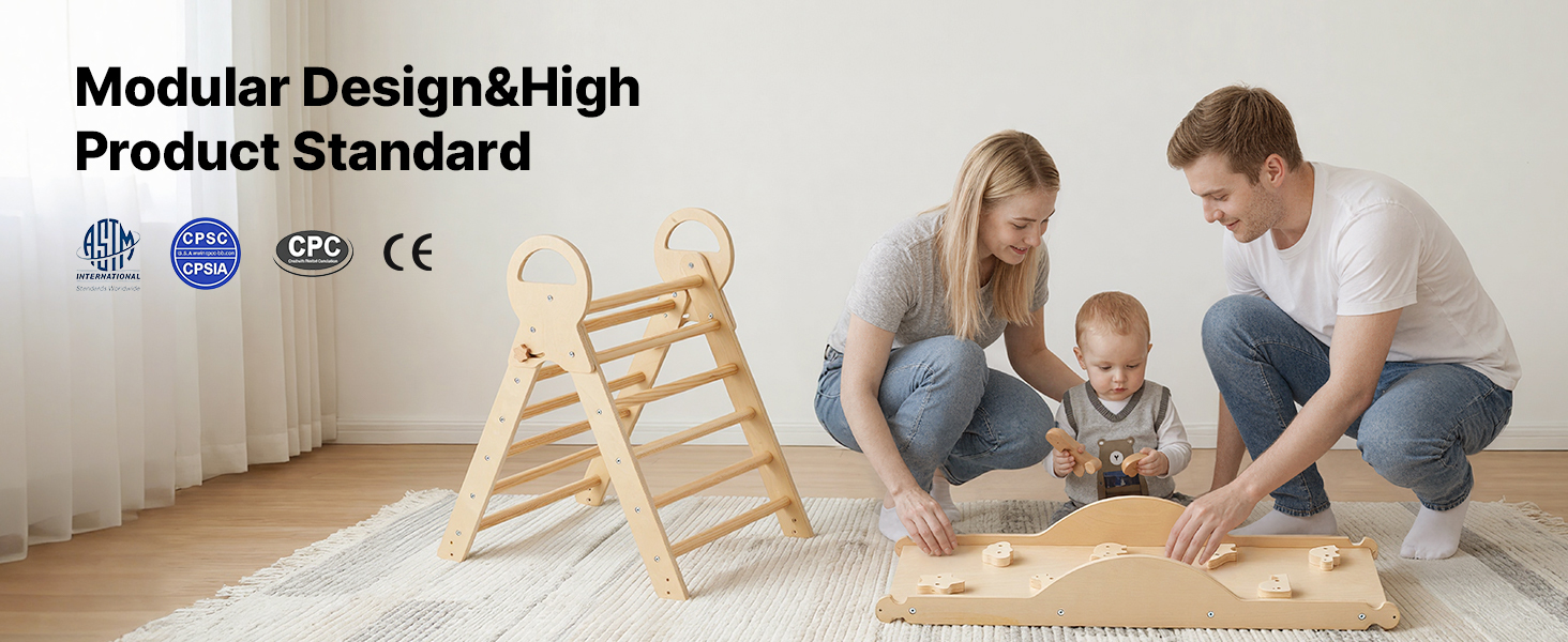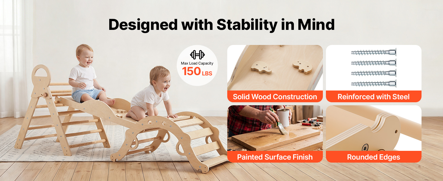 Crafted from natural solid wood and reinforced with durable steel, these climbing toys for toddlers feature smooth, rounded edges for added safety. Designed with a focus on stability and strength, they have successfully passed a weight capacity test of 150 lbs, ensuring a secure playtime experience.