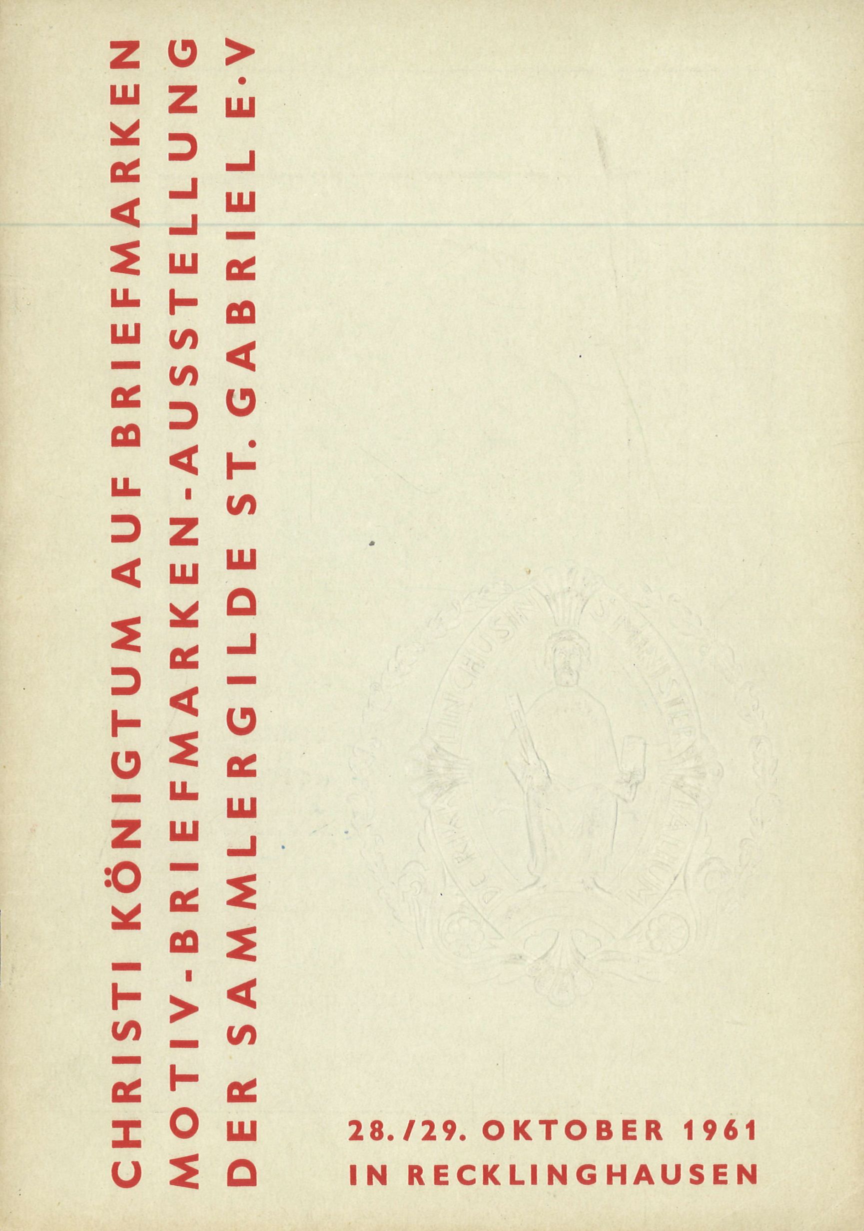 5.) Und ein dritter Katalog zur Ausstellung "Christi Königtum auf Briefmarken" (Okt. 1961), 31 Seiten, kart., sehr gut erhalten