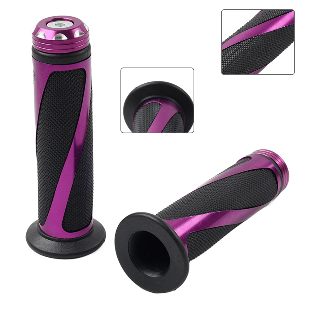 Motorcycle 7/8" Hand Grips Handle Bar Rubber Gel For Yamaha MX ATV Pit Dirt Bike Features: 1.Made of good materials, durable. 2.None-Slip design, provides smooth throttle tuning and better control. 3.It provides great comfort and safe driving for you. 4.Simple design, easy to install and match, bring a new look to your motorbike or bike. Specification: Condition:Aftermarket Brand New Material:Aluminum,Rubber Color:Purple Fitment: Universal fits for all 7/8" standard handlebars, left side 7/8"(22mm), right side 1"(24mm) for twist gas throttle. Please check the size and the details carefully. Package Included: 1 Pair of Hand Grips (Left & Right) Notes: 1.Due to the lighting and screen settings, the real color may slightly different from the picture. 2.Please allow slight manual measurement deviation for the data. 3.Instruction of installation is not included. 4.This is aftermarket replacement item but not genuine.
