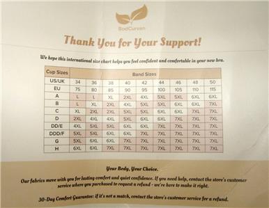 This bra is size 6X (see size chart) and made by BodCurven. It is new without tags. Very comfortable bra.