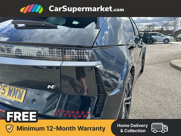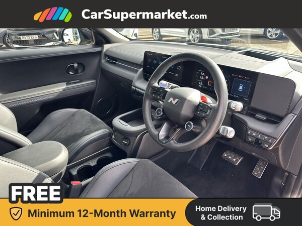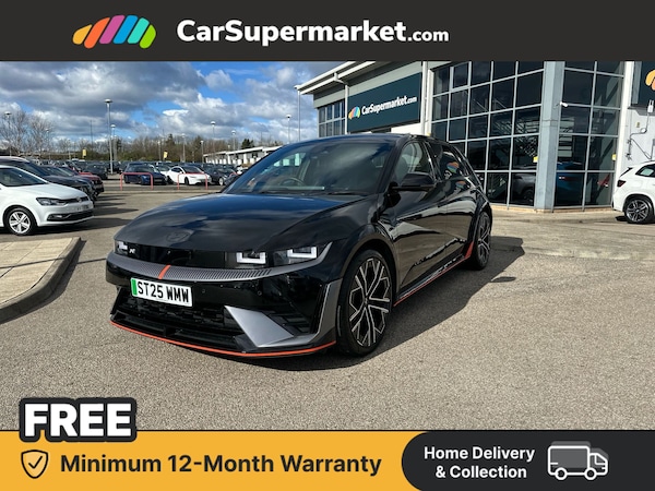 Hyundai Ioniq 5 N 478kW 84kWh Auto [Vision Roof] (Black) A high-performance electric SUV combining striking design with cutting-edge technology and exceptional power. Includes sat nav, blind spot monitoring, Bluetooth, cruise control, traffic sign recognition, Apple CarPlay, Android Auto, heated front seats, heated steering wheel, and keyless entry. Optional extras include Abyss Black paint, Eco Alcantara and pure leather interior in black, and Vision Roof (£1,950). Minimum 12-month warranty. MOT due 05/06/2028.