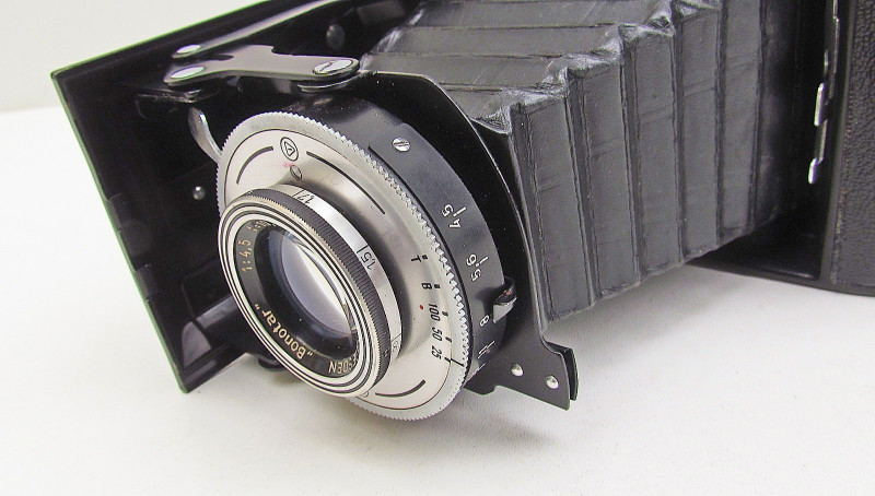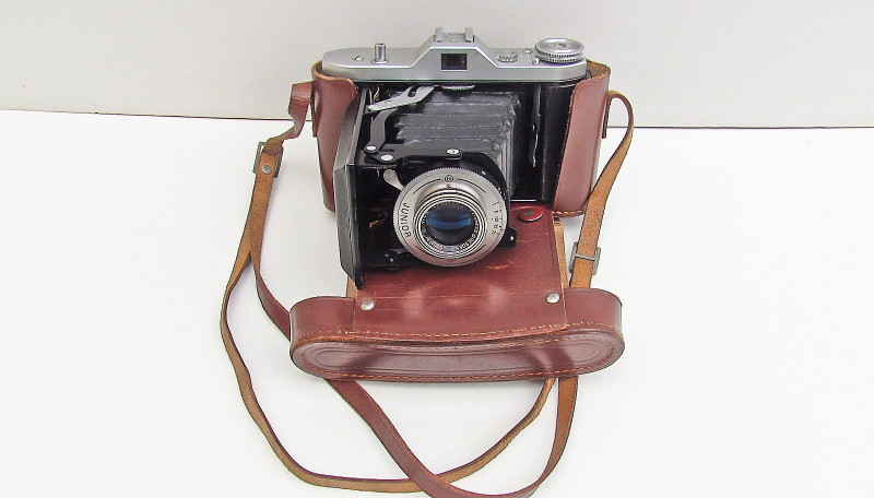 Check out more pictures under the description. Zum verkaufen eine alte Deutsche Rollfilmkamera: Belfoca II Lenz: Bonotar f4.5/105 mm,Junior Verschluss. Hergestellt in Jahr 1954. Gehäuse aus Blech,mit Aluminium Leiste. Wenig Gebrauchsspuren. Dazu orig.Ledertasche.
