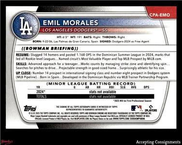 2025 Bowman Chrome Prospect Autographs Emil Morales ROOKIE AUTO DODGERS
