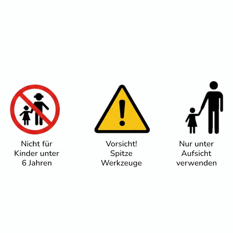 Sie enthalten spitze und scharfe Elemente, die unter Aufsicht von Erwachsenen verwendet werden sollten.