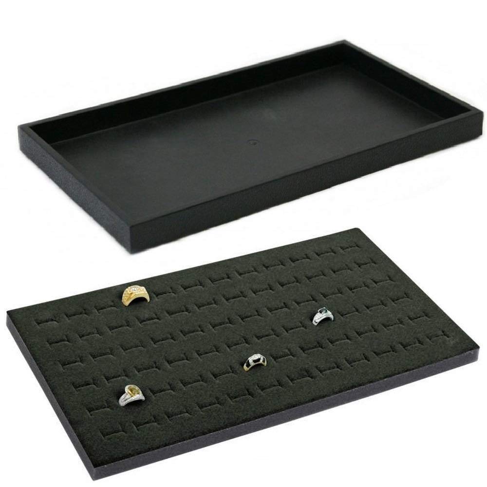 These CuteBox Company Black Ring Display Foam/Tray combos are great for retailers, small businesses, or jewelry enthusiasts. Each ring foam can hold up to seventy-two rings. The top of each foam is covered in black felt. The seventy-two ring slots are evenly spaced, allowing you to display every ring at once while giving each piece the room it needs to shine. Each foam fits perfectly in our standard sized jewelry display trays, measuring 15” x 8.5 x 1”. The trays are made of high quality, durable black plastic. These ring foams are great to show off your pieces at trade shows or in your store. They can also be utilized for home use, allowing you to keep your rings easily organized and accessible instead of jumbled up in a jewelry box. We offer these ring foams as single pieces, two packs, and six packs. Each ring foam is sturdy enough to keep your rings safely in place and well organized, while being soft enough to protect your jewelry from any scratches or other damages. These foams are incredible lightweight, even while in display trays, making them perfect for travel and transportation. Each tray small foot tabs which allow you to easily stack multiple trays on top of each other without them moving around.