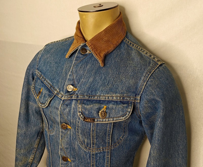 You are bidding on a Vintage 80s or early 90s Mens Lee blue jean/denim jacket size 34 (Fits XS or Youth)