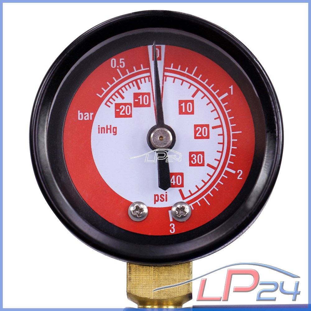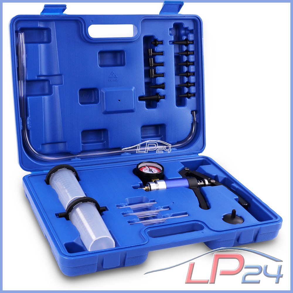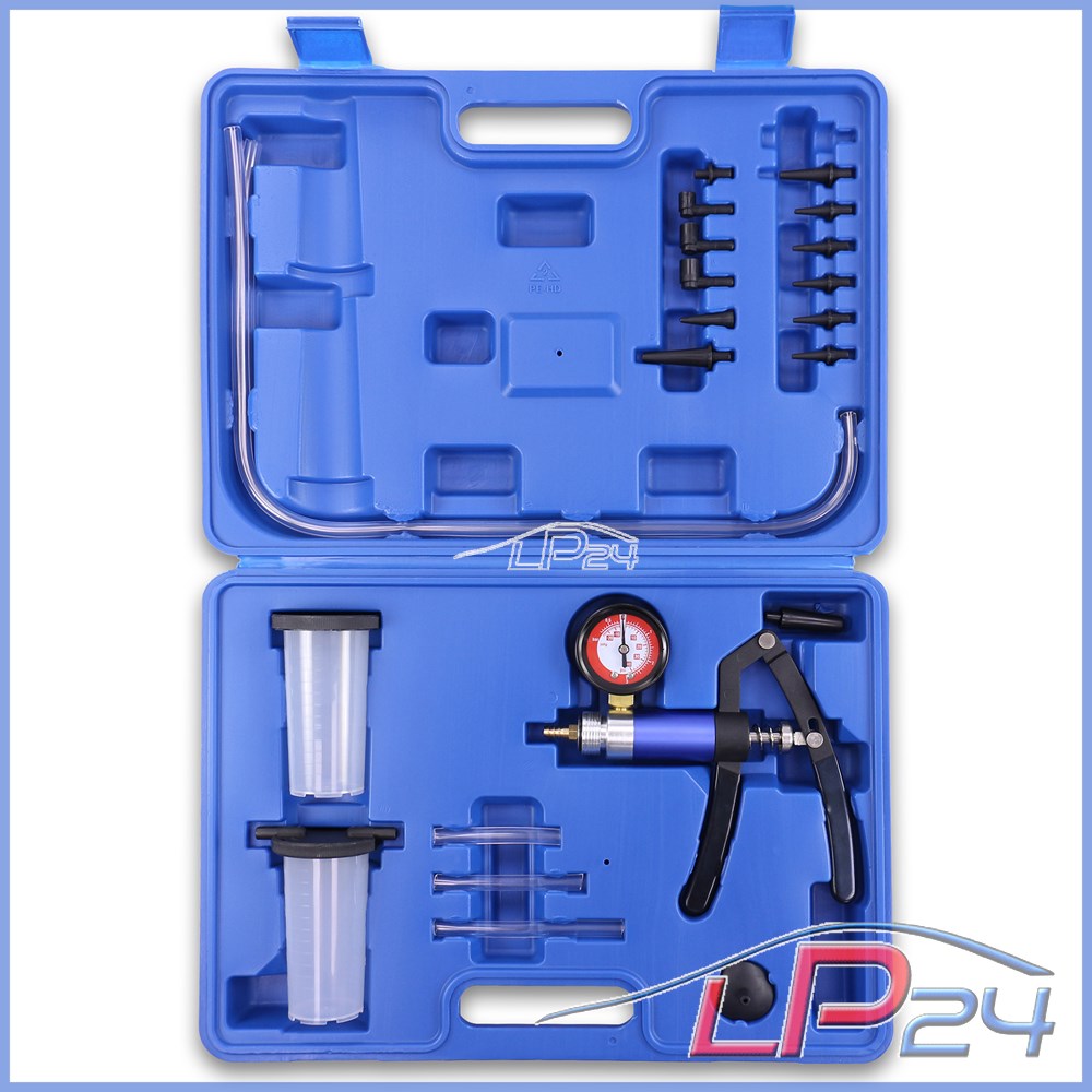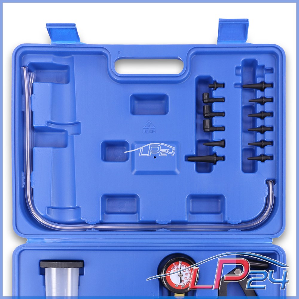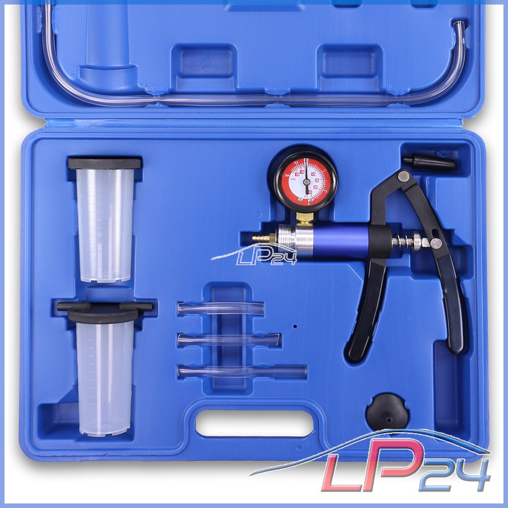 - Grâce aux récipients de récupération, le kit convient également pour la purge rapide des freins.[Le manomètre vous indique la pression/dépression de -0,75 à 3 bars.