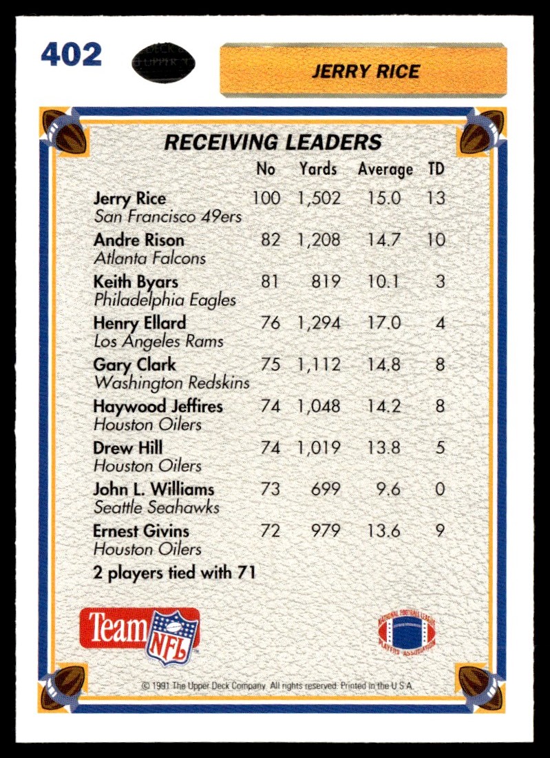 1991 Upper Deck Jerry Rice San Francisco 49ers #402