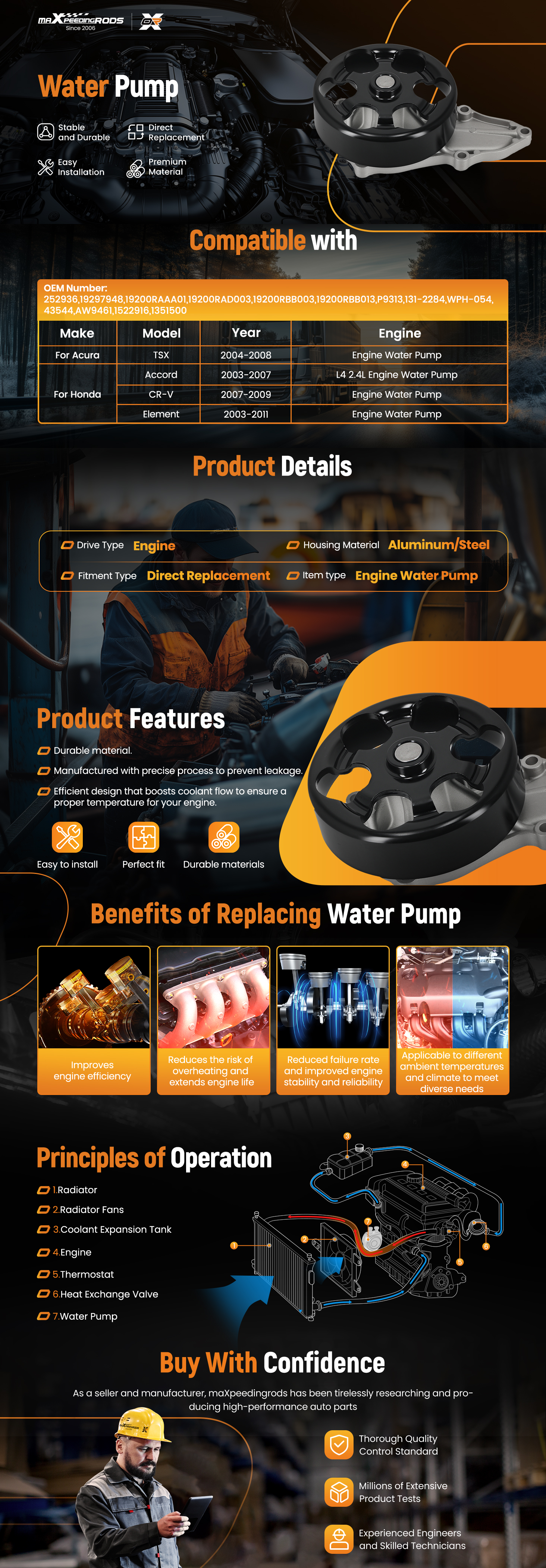 for Honda Accord L4 2.4L Engine Water Pump 2003-2007
