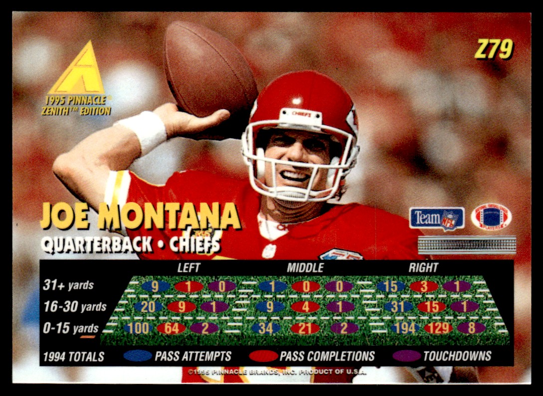 1995 Pinnacle Zenith Joe Montana Kansas City Chiefs #Z79