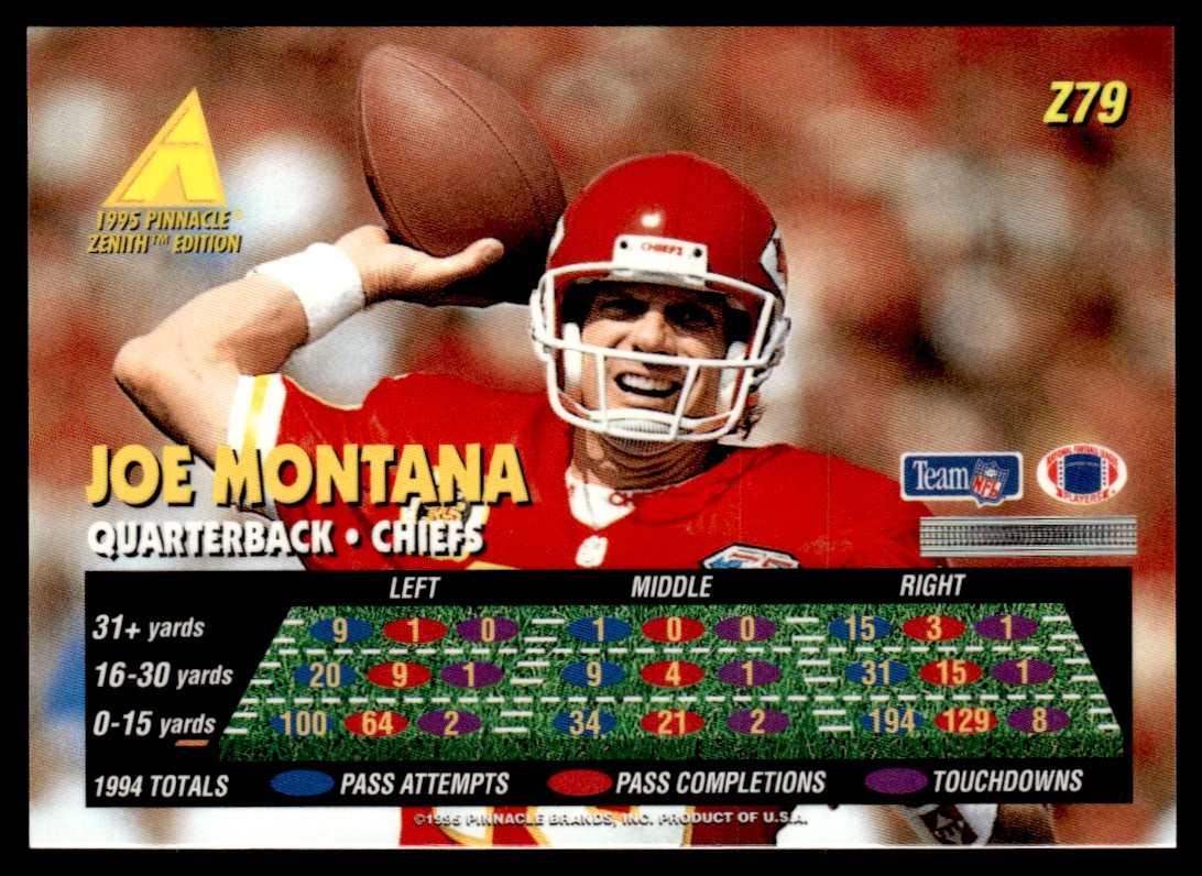 1995 Pinnacle Zenith Joe Montana Kansas City Chiefs #Z79