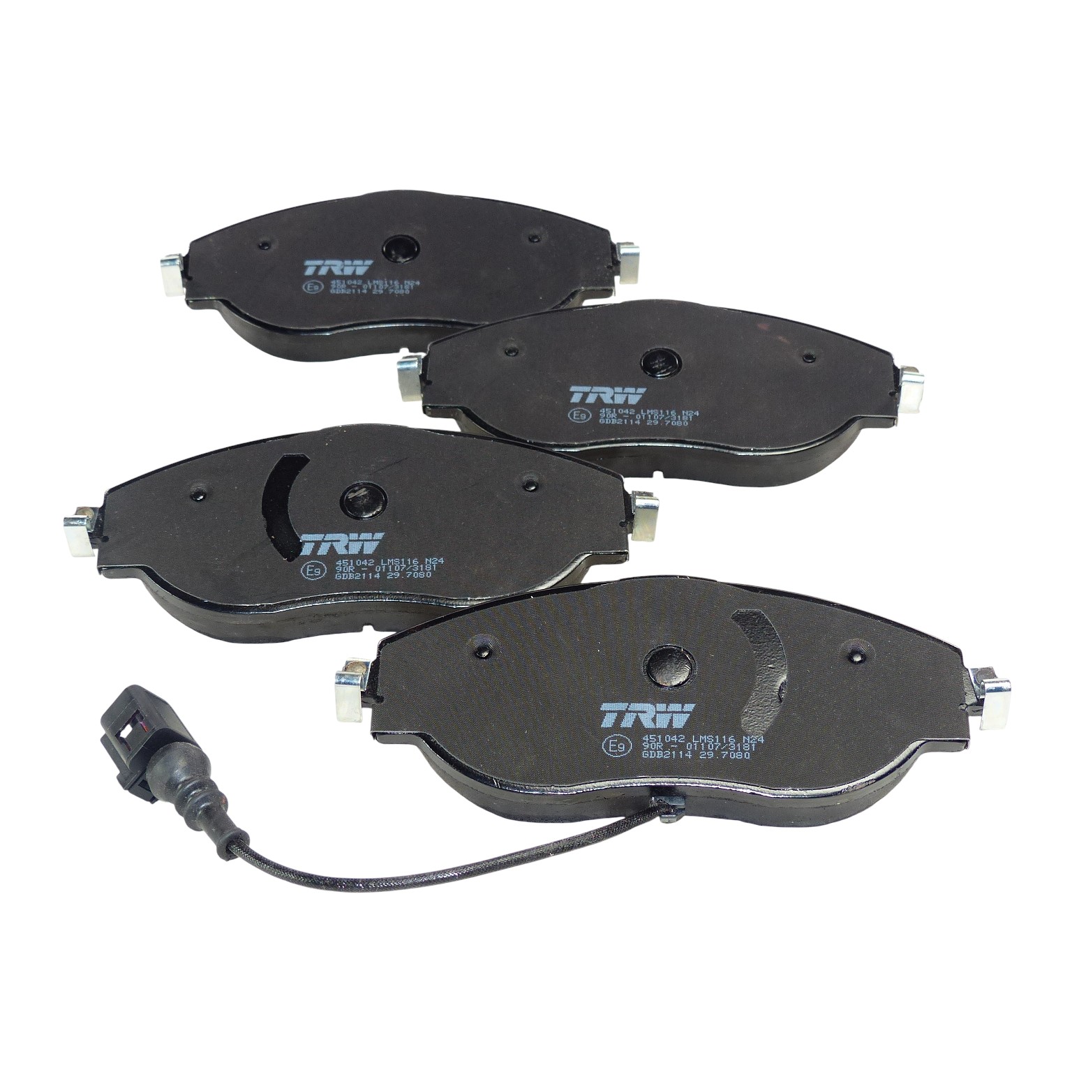 Las pastillas de freno TRW 8V0698151C son de calidad OEM para Golf 7 GTI/R, Audi S3 8V y Seat Leon Cupra con freno delantero de 340 mm.