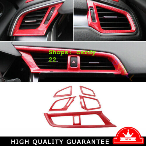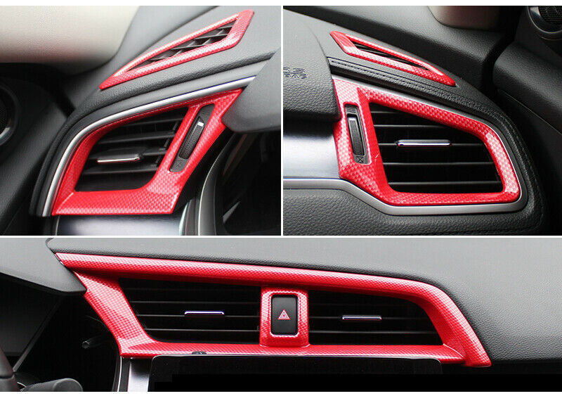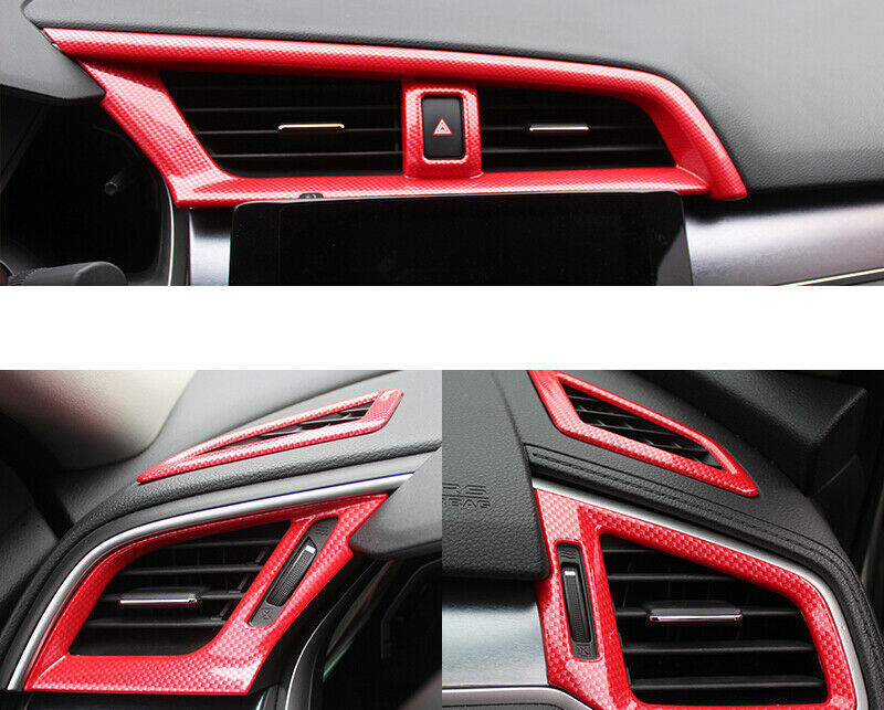 Middle Air Outlet Vent Cover Trim For Honda Civic 10th 2016-21 Red Carbon Fiber