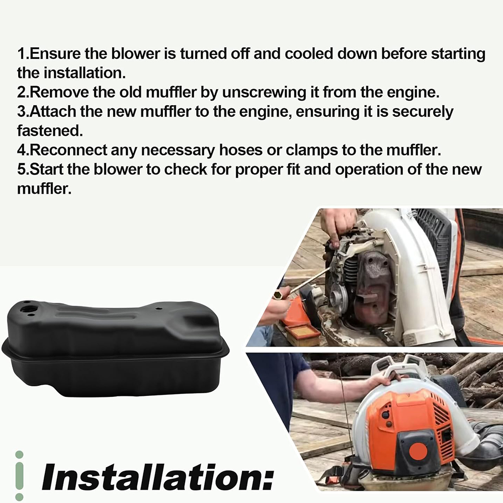 -Installation: Install the new muffler by removing the old one, securely attaching the replacement, and ensuring all connections are tight before starting the engine