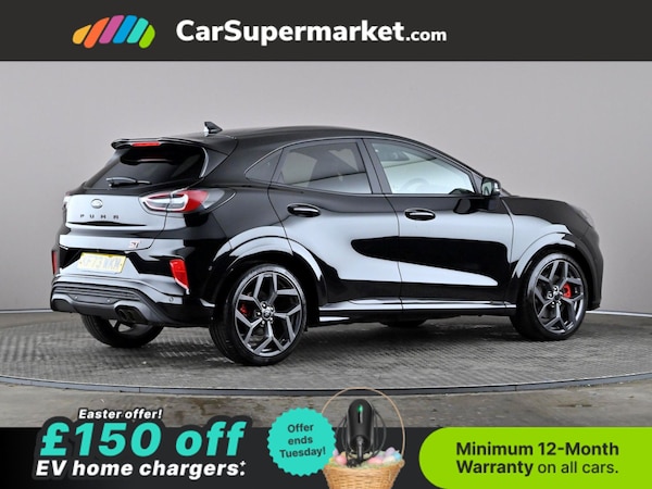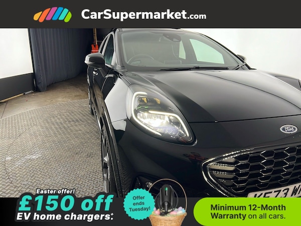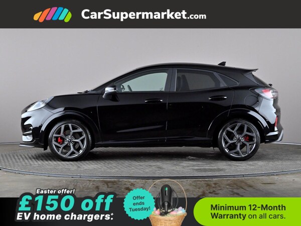 Ford Puma 1.5 EcoBoost ST (Black) A sporty compact SUV delivering engaging performance and modern features. Includes cruise control, parking sensors, lane departure warning, traffic sign recognition, privacy glass, quickclear heated windscreen, wireless phone charging, sat nav, and keyless entry. Optional extras: Agate Black; Driver Assistance Pack (£925) Supplied with a 159-point inspection and a minimum 12-month warranty. Last serviced 31/03/2026. MOT due 28/12/2026.