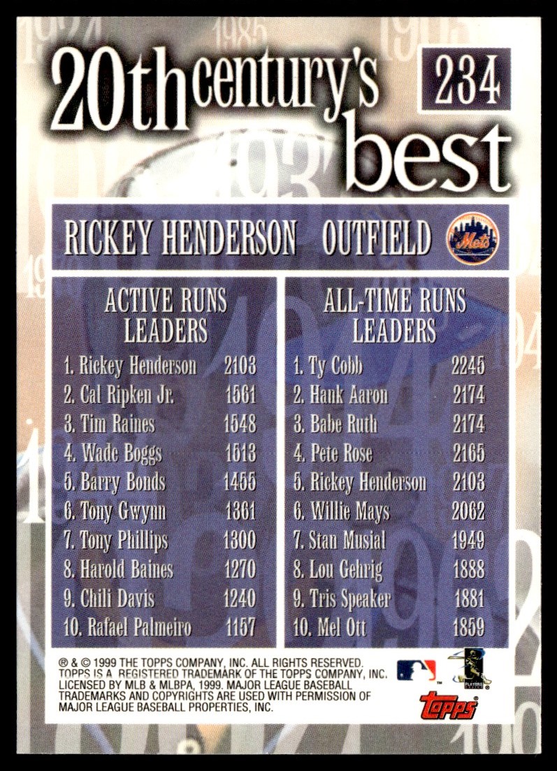 2000 Topps 20 Centrury's Best Rickey Henderson New York Mets #234