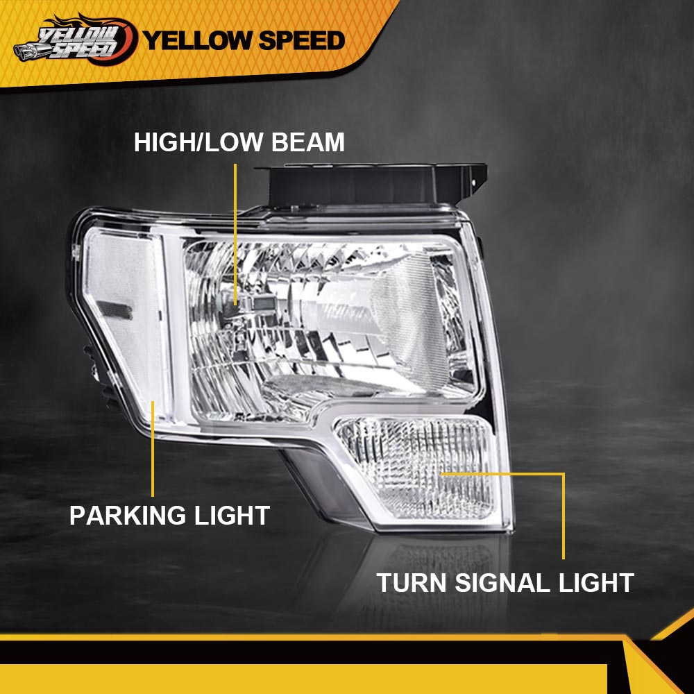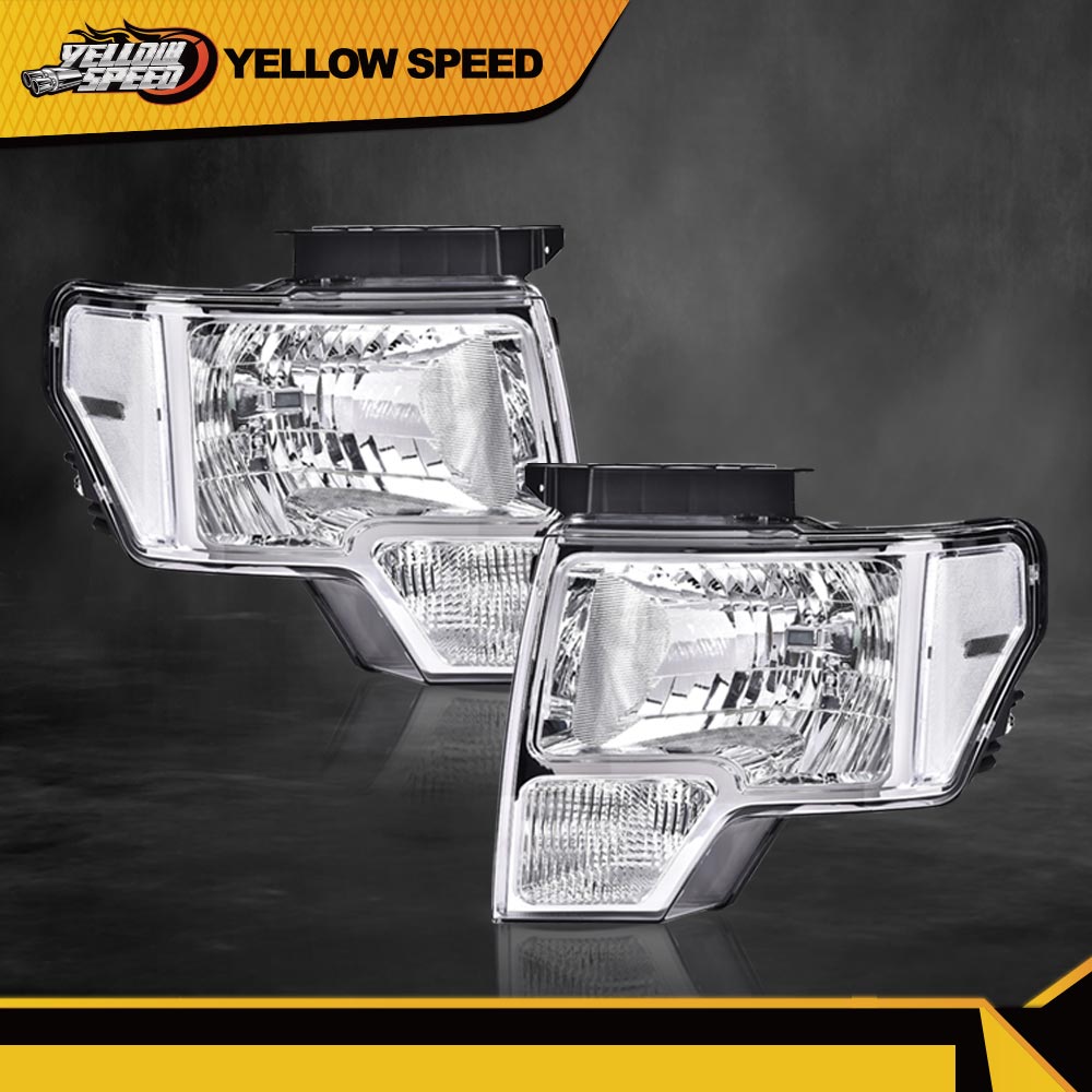 PRODUCTChrome Housing Clear Side Headlight Left+Right Fit For 2009-2014 Ford F150 Truck