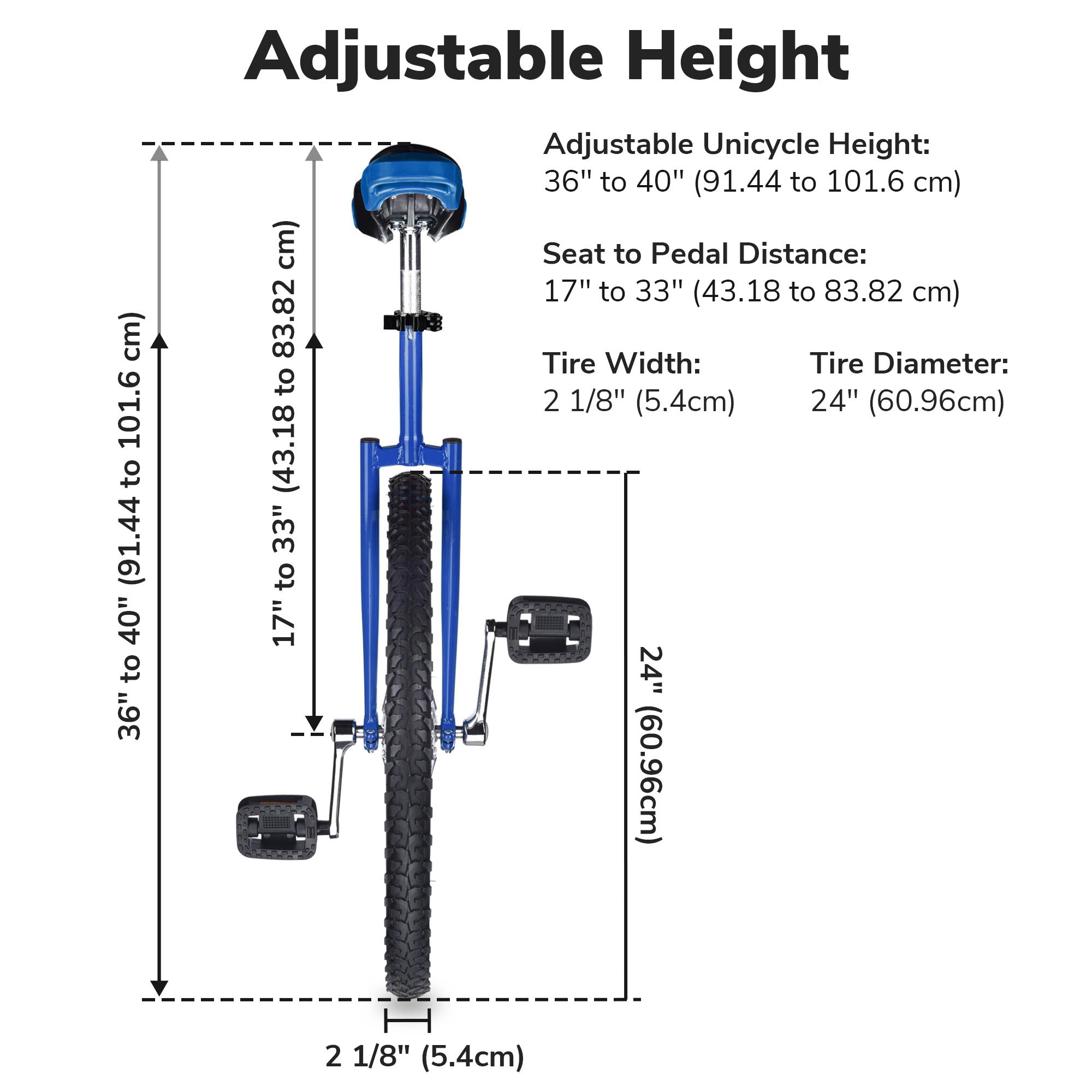 - Adjustable Unicycle Height 36" to 40"
