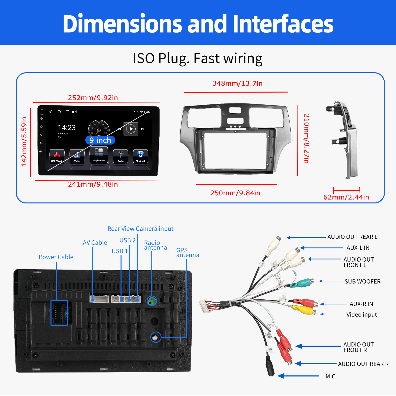 9 Inch Android 15 Car Radio for Lexus ES250 ES300 ES330 2001-2006: The Android car radio with 9" 1280* 720 HD capacitive touchscreen, 4GB RAM and 64GB ROM allows you to download your favorite apps and videos, so driving is no longer boring. No extra frame, no cable change, plug and play.