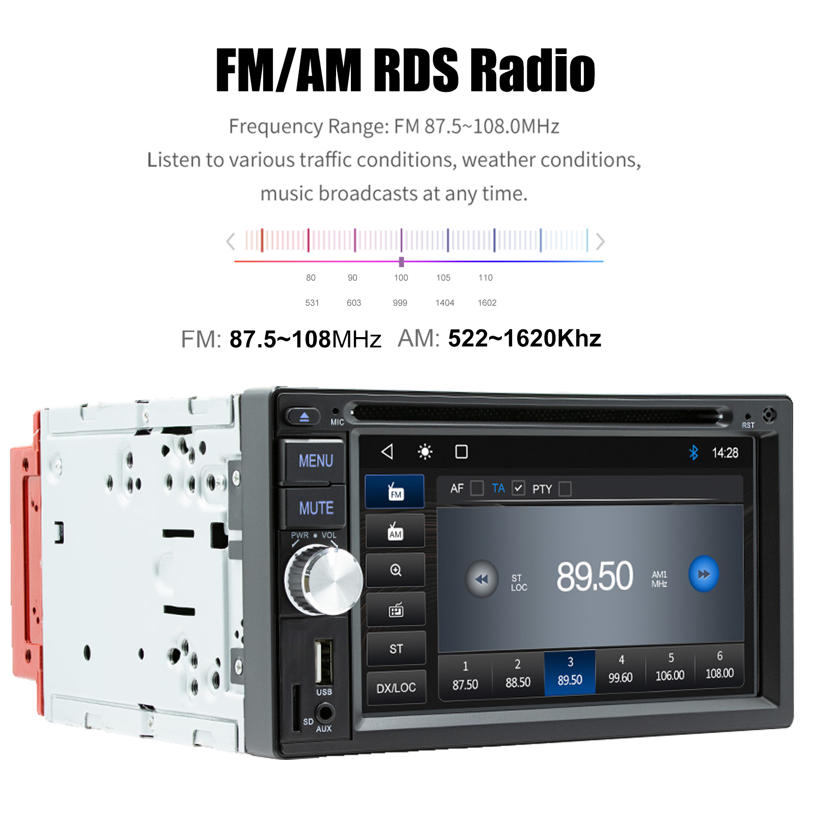 FM/AM/RDS radio and Bluetooth: Supports Bluetooth 5.0, with built-in microphone, so you can make hands-free calls while driving. Supports access to the phone book, music playback interface, etc. RDS supports. You can save 18 FM and 12 AM radio stations.Helps you to access the latest news, weather forecasts and traffic information.