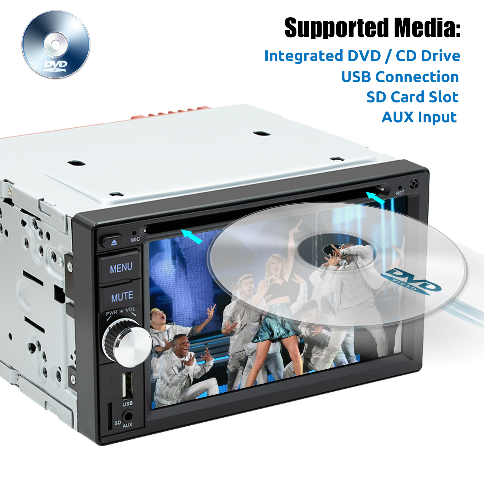 Car Multimedia player with DVD/CD: The car stereo CD-DVD player is compatible with most audio and video formats. You can listen to the radio while driving. DVD videos can play your favorite songs.