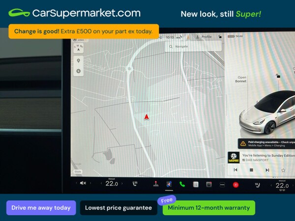 Tesla Model 3 RWD Auto (White) A fully electric saloon offering impressive performance, advanced technology, and exceptional efficiency. Includes blind spot monitoring, lane departure warning, sat nav, rear view camera, traffic sign recognition, cruise control, digital radio, Bluetooth, heated front and rear seats, heated steering wheel, and keyless entry. 159-point inspection completed. Minimum 12-month warranty. Last serviced on 27/03/2026. MOT due 20/02/2027.