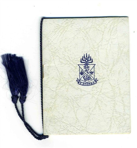 An Alpha Epsilon Pi (AEPi) Gamma Deuteron Formal Program. From the University of Texas, circa 1960. From the Tropical Wonderland Formal held at the Texas Federated Women's Club. In near mint condition. Has a list of the Officers, Active members and the Pledges. Barry Cohen was the Master.