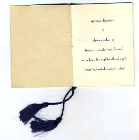 Alpha Epsilon Pi University of Texas Gamma Deuteron Formal Program 1960